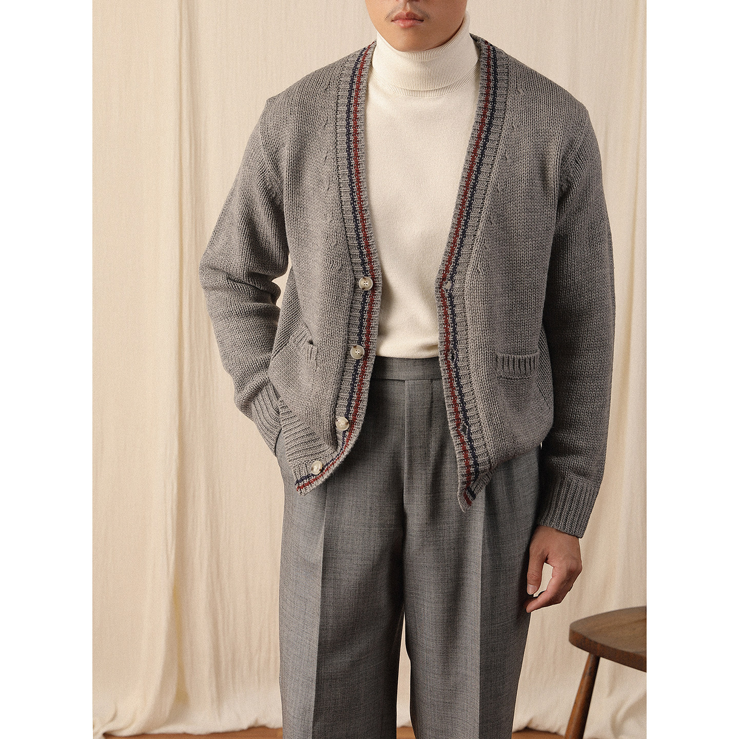 开衫保暖毛衣男秋冬休闲宽松拼色V领针织衫经典复古免烫时尚外套