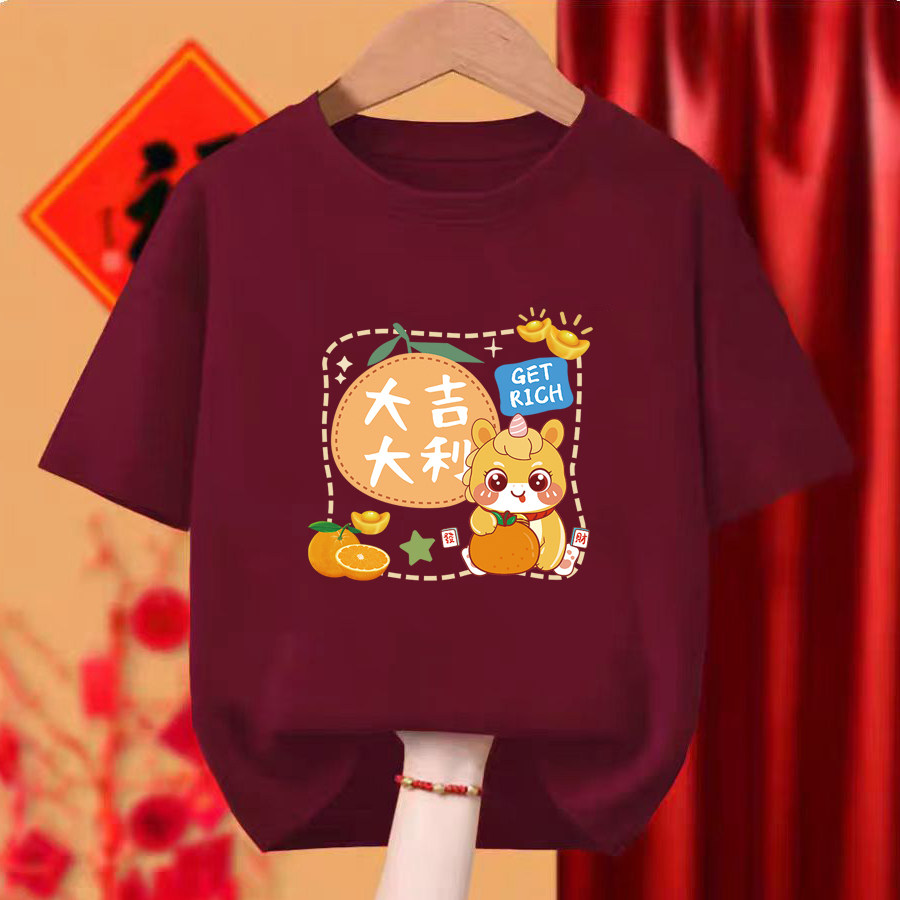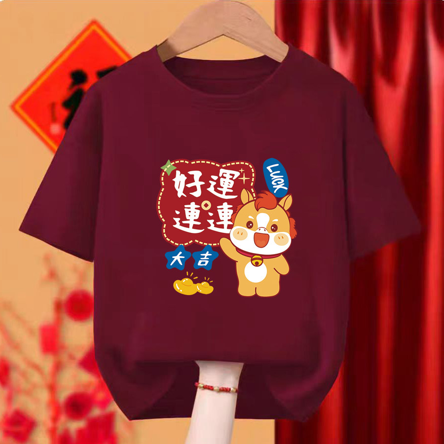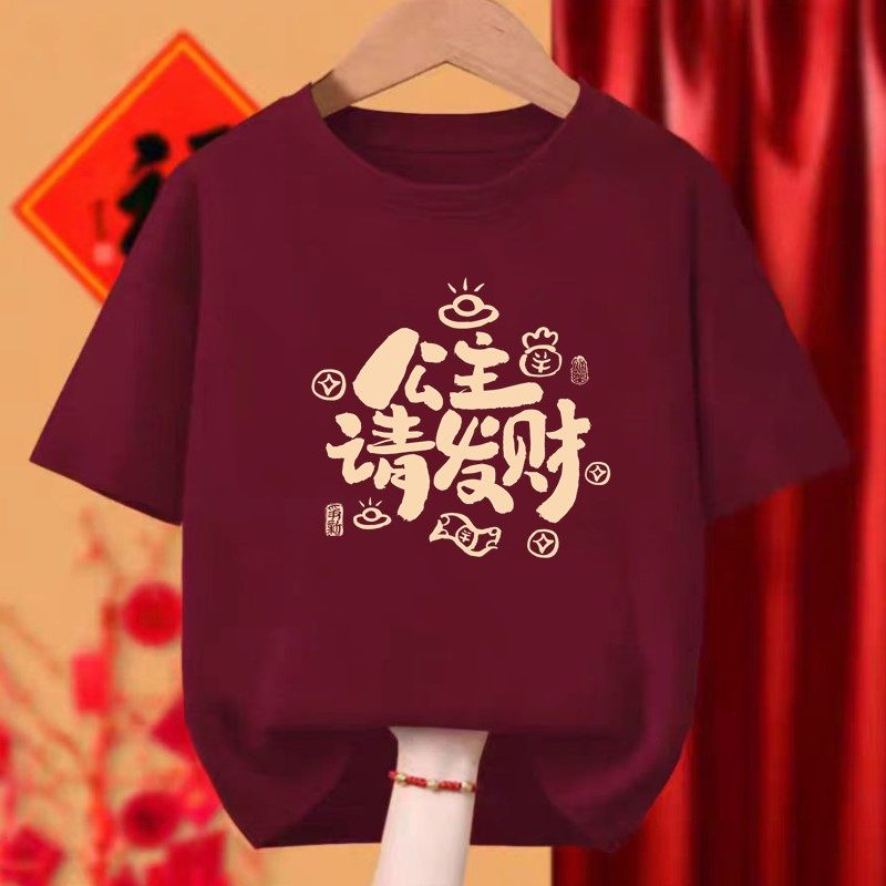 2026马年酒红色t恤情侣装夏装男女短袖DIY定制新年活动服平安喜乐