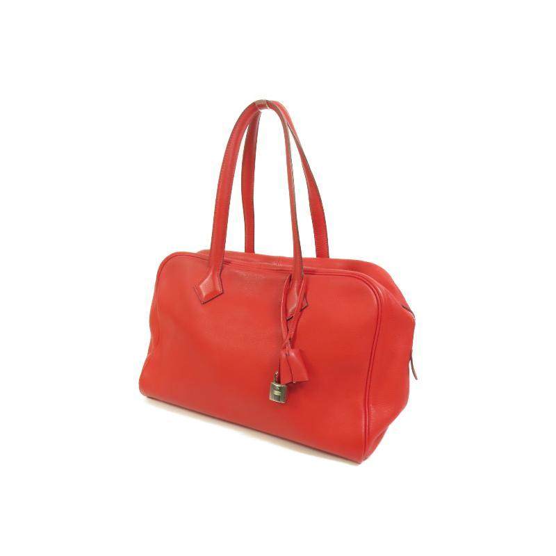中古Hermes爱马仕女包B级9新Victoria维多利亚牛皮手提包红色
