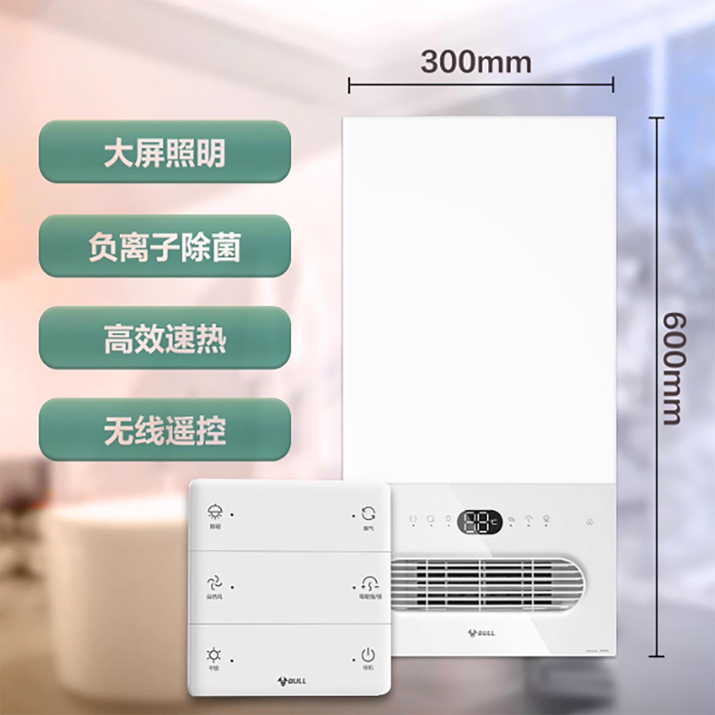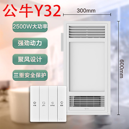 公牛300x600浴霸暖风照明排气一体集成吊顶五合一多功能浴室风 公