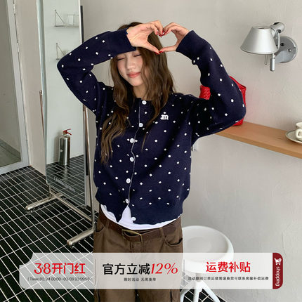 橘子树在哪儿韩系波点针织开衫女秋季温柔风软糯显瘦百搭长袖上衣