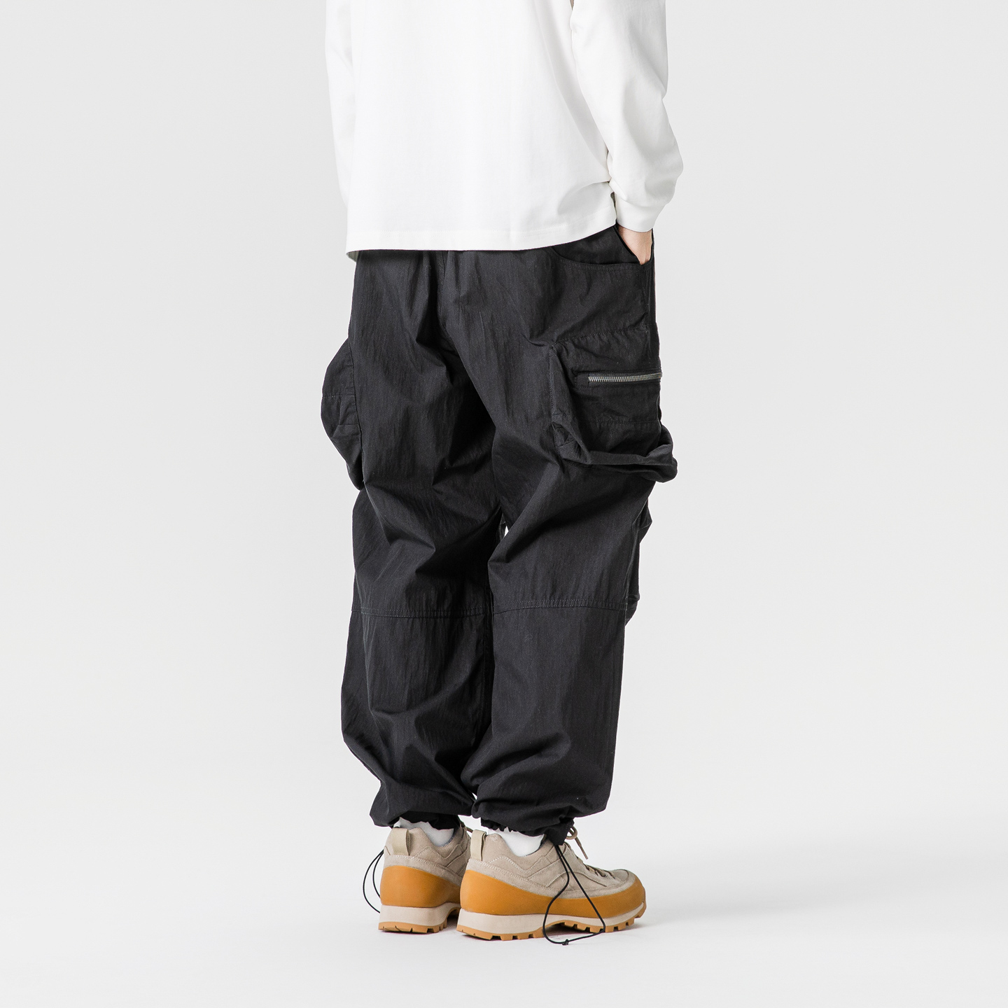 户外慵懒松弛感男裤褶皱机能口袋工装长裤子男束脚冲锋伞兵休闲裤