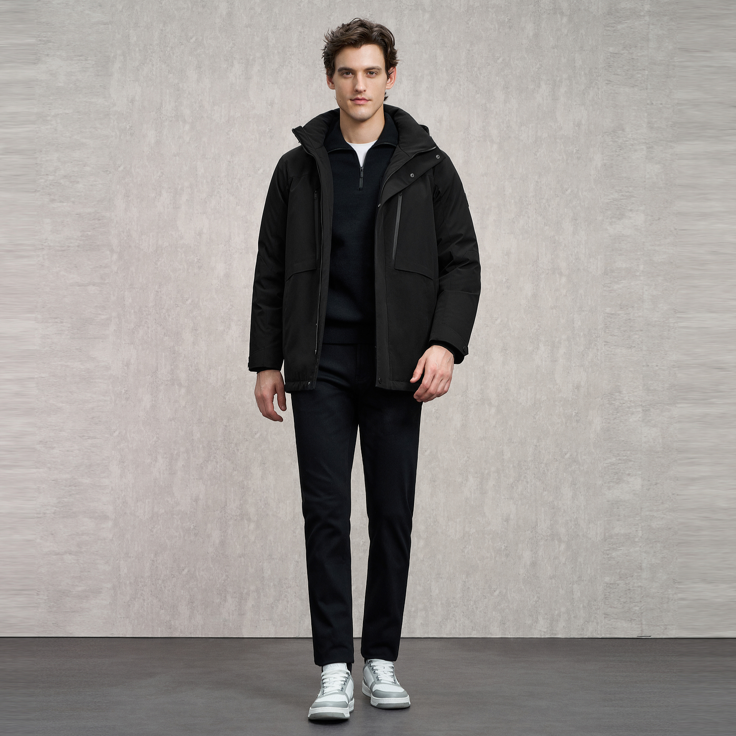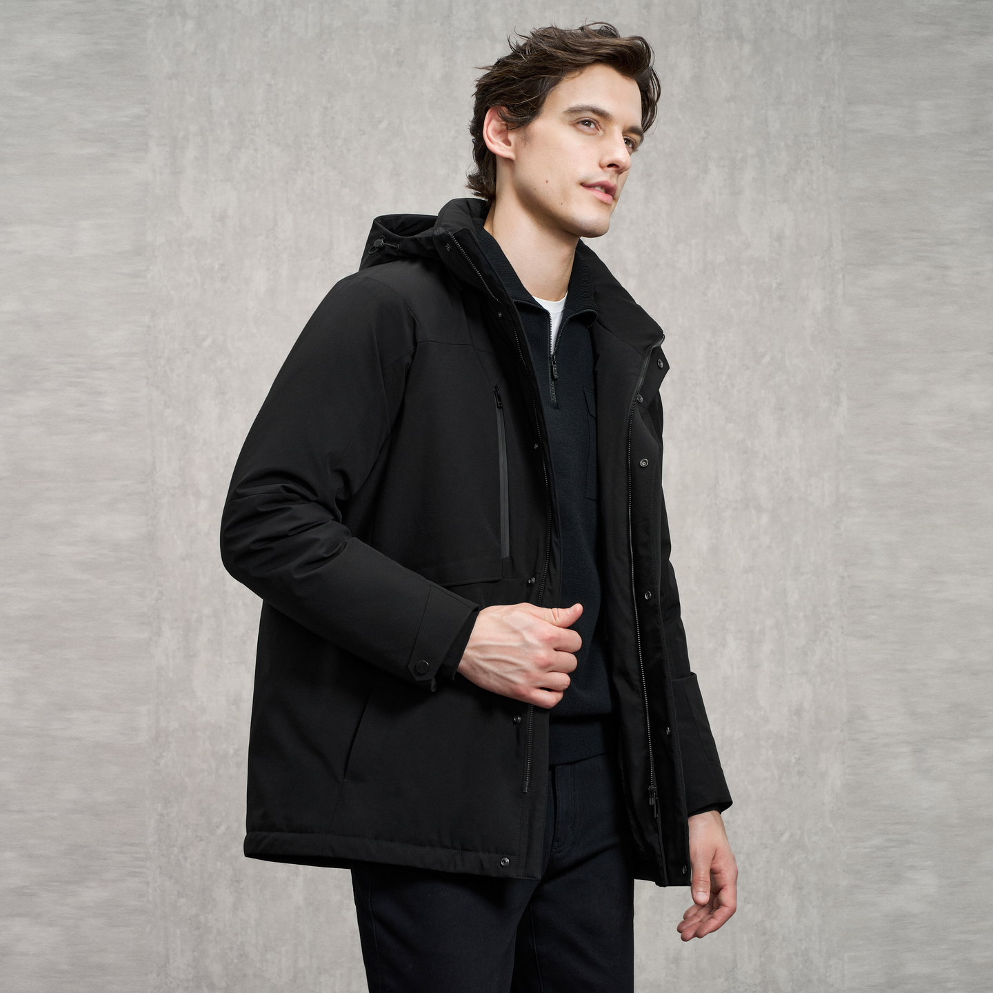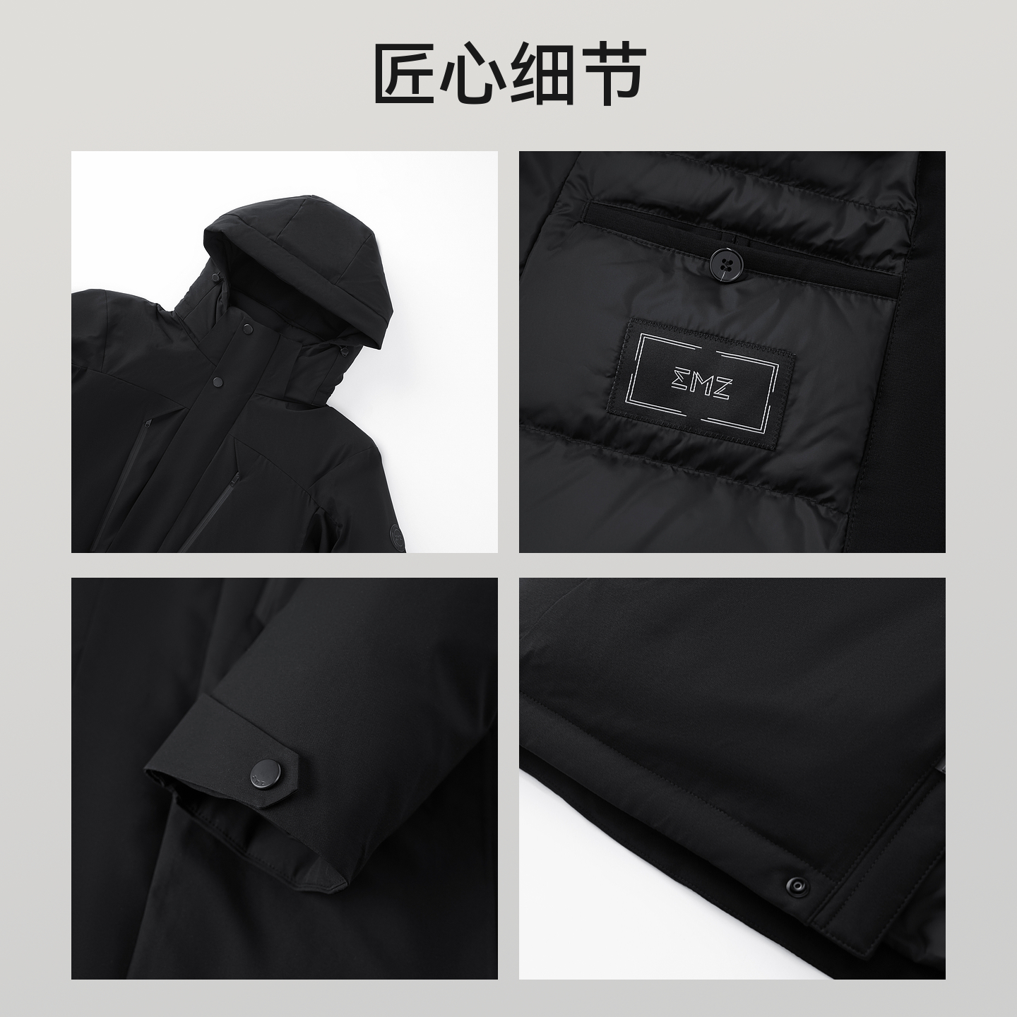 EMZ鄂尔多斯【拒水鸭绒】冬季新款男士中长款连帽黑色羽绒服外套