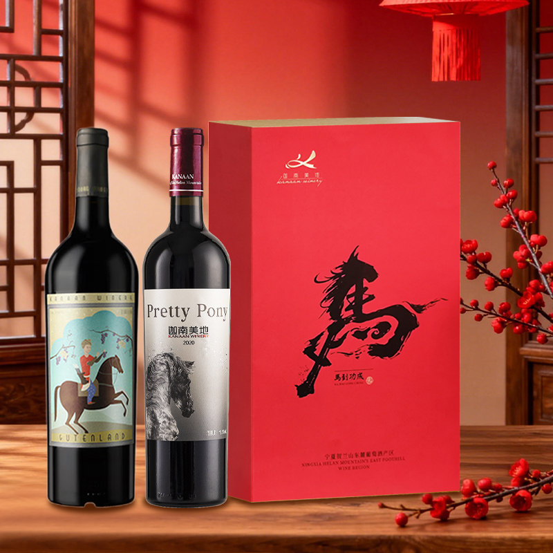 迦南美地古藤兰 小马驹干红葡萄酒礼盒套装2支宁夏红酒750ml