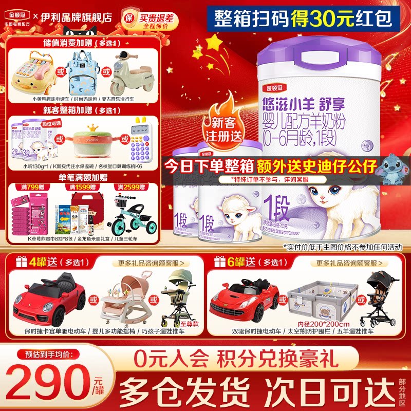伊利金领冠悠滋小羊舒享1段0-6个月新生婴儿低敏羊奶粉700g*1罐