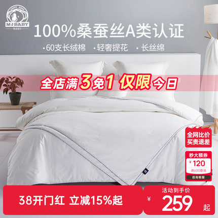 梦洁宝贝儿童100蚕丝被子母被二合一被芯春秋被四季被床上通用A类