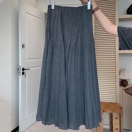 欧货高端定制灰色褶皱慵懒半身裙女2025秋季新款高级减龄气质裙子