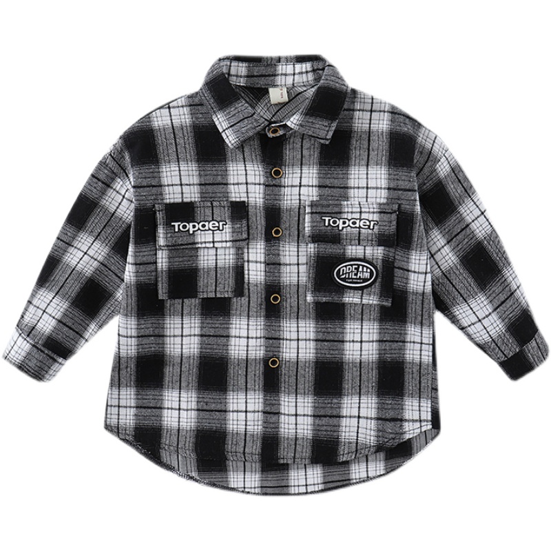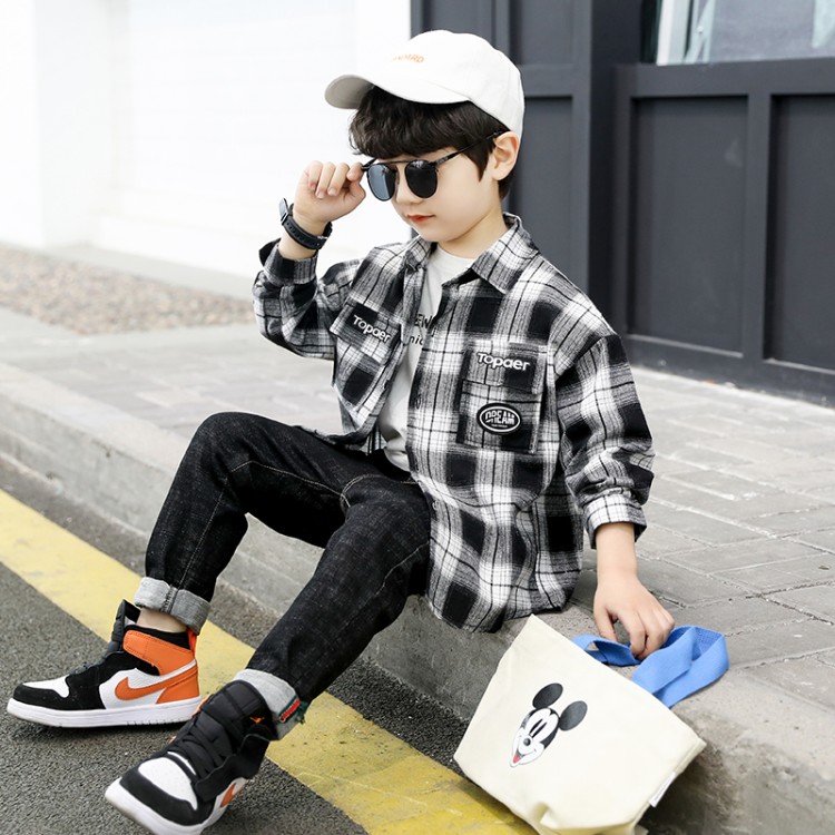 童装男童春秋纯棉格子衬衫儿童秋装长袖薄款衬衣中大童春装外穿潮