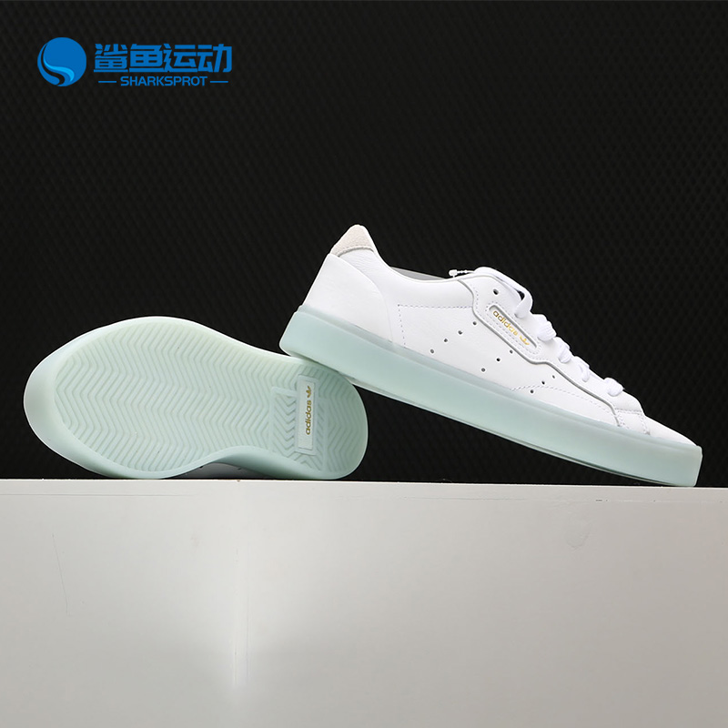Adidas/阿迪达斯正品 三叶草女子SLEEK皮面复古水晶底板鞋 G27342