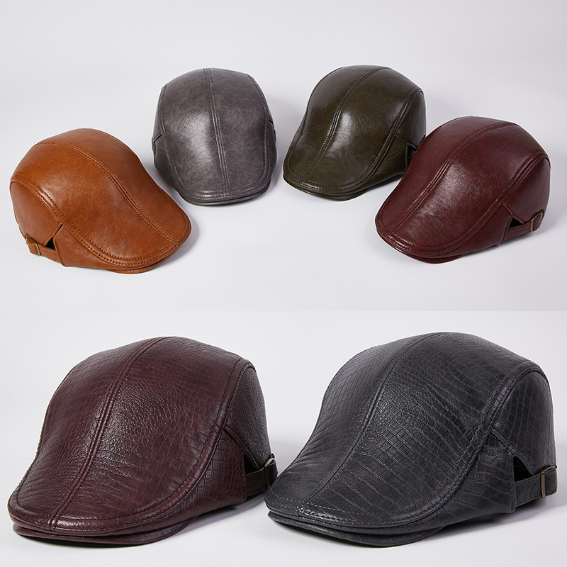 秋冬季帽子男士羊皮韩版中老年人男鸭舌帽前进帽时尚真皮帽子
