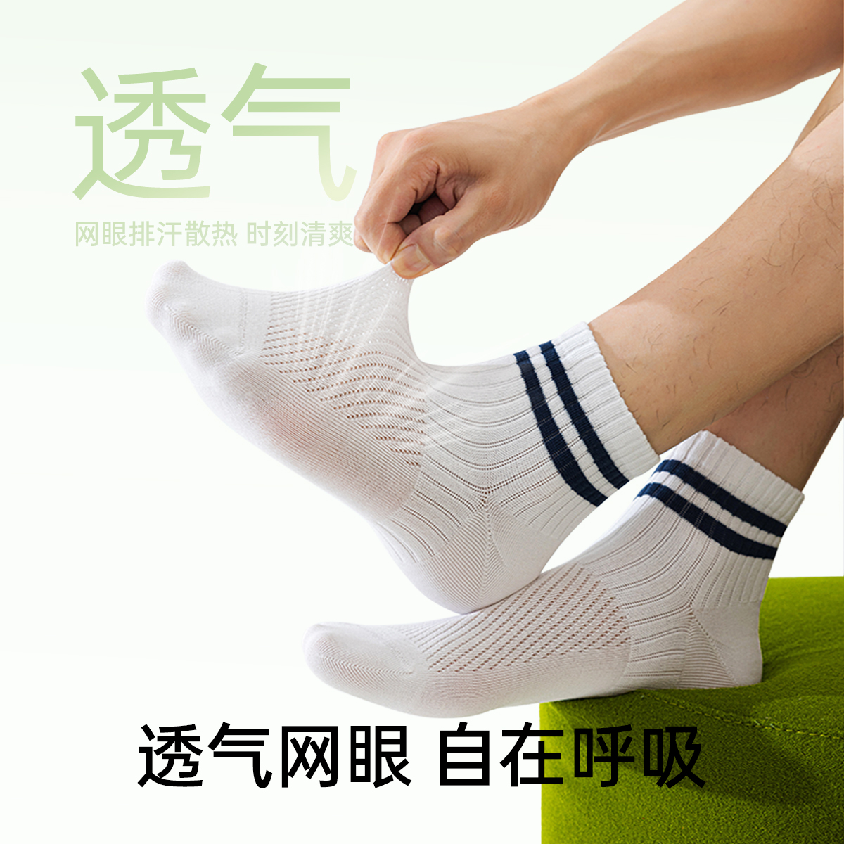 袜子男青少年夏薄款短袜防臭运动网眼透气纯棉吸汗男士夏天短筒