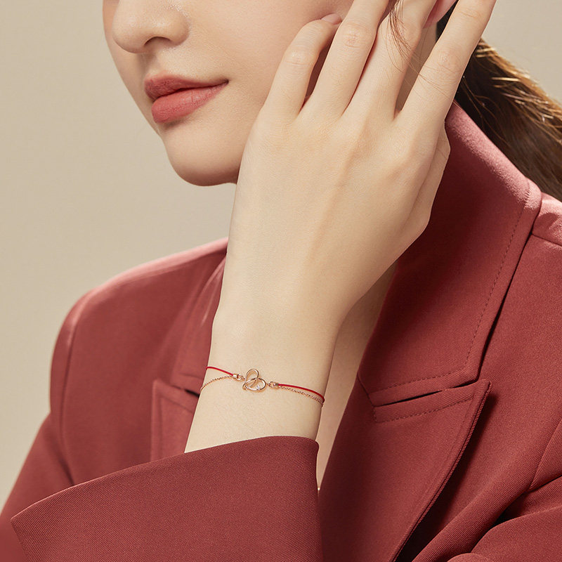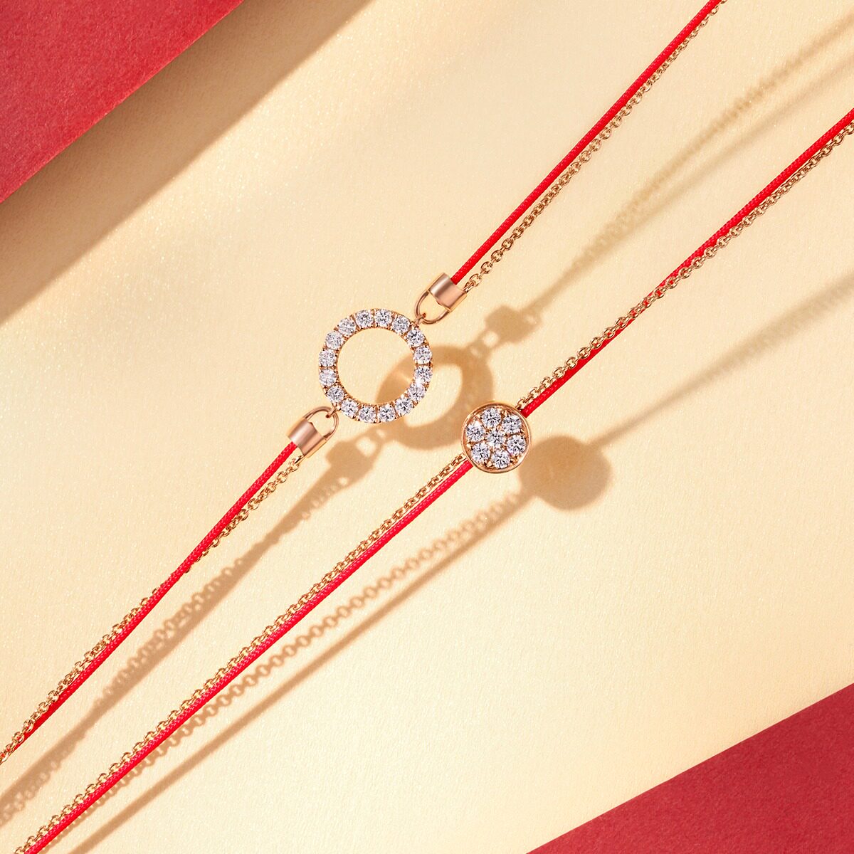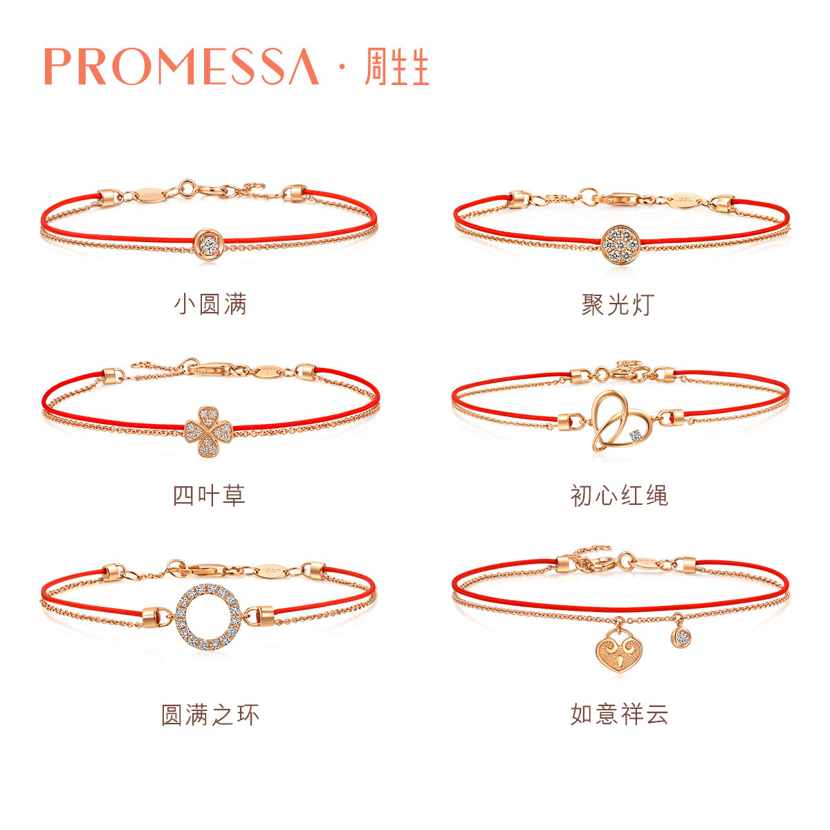 周生生PROMESSA同心18K玫瑰金红绳钻石手链本命年手绳
