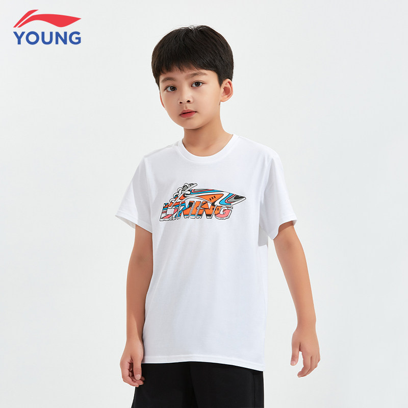 李宁男童t恤童装纯棉短袖夏装男孩白色上衣中大童宽松透气半袖男