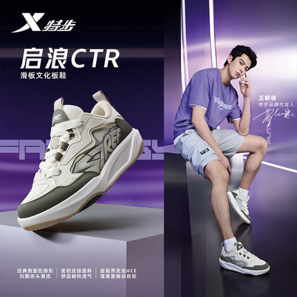 特步启浪CTR男子2025夏季新款经典休闲简约运动板鞋975219310003