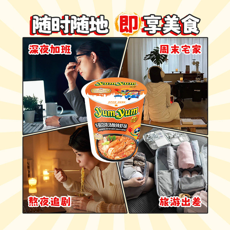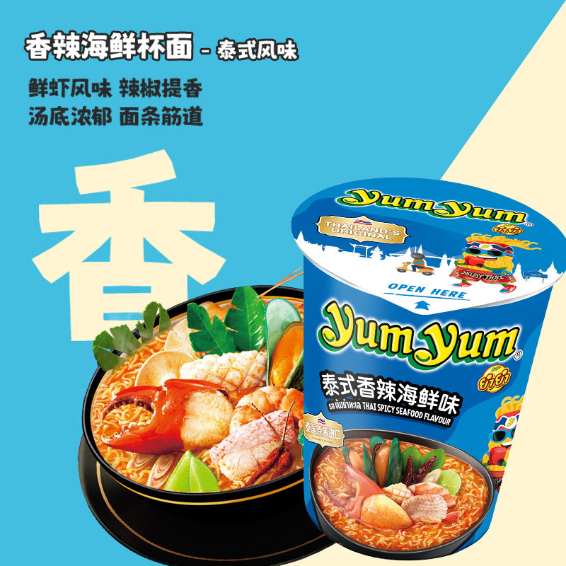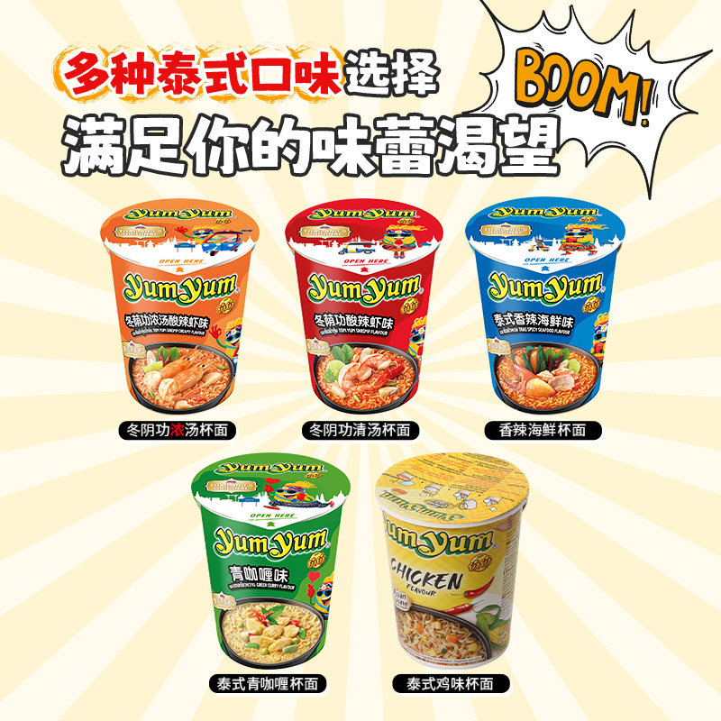 养养混合随机口味70g*3杯桶装泰国yumyum进口方便面速食泡面