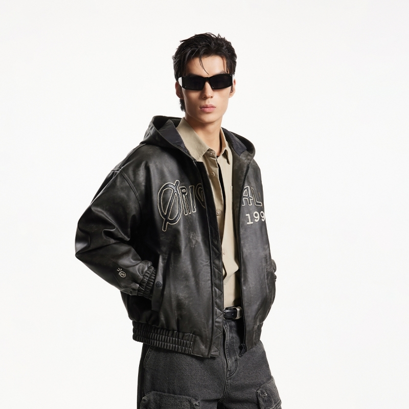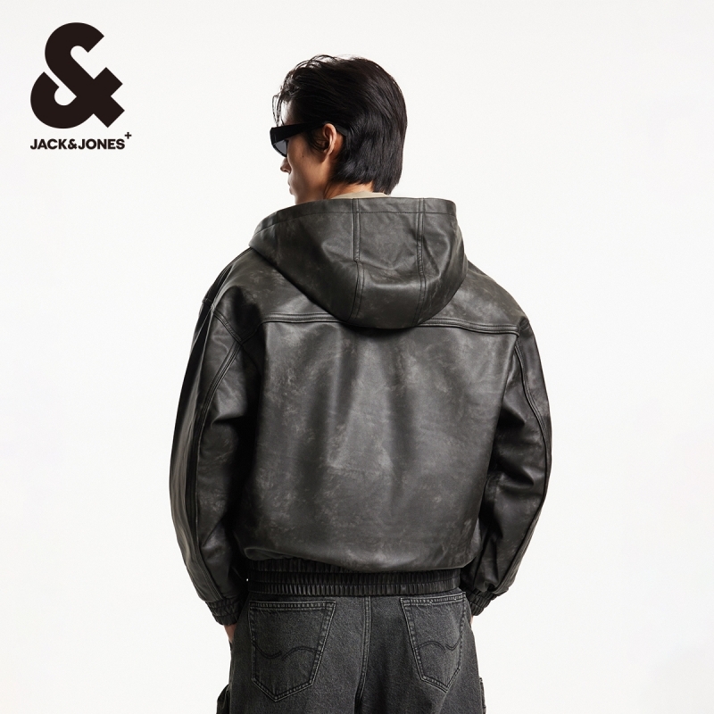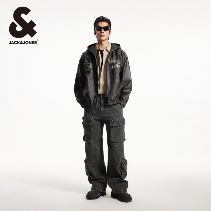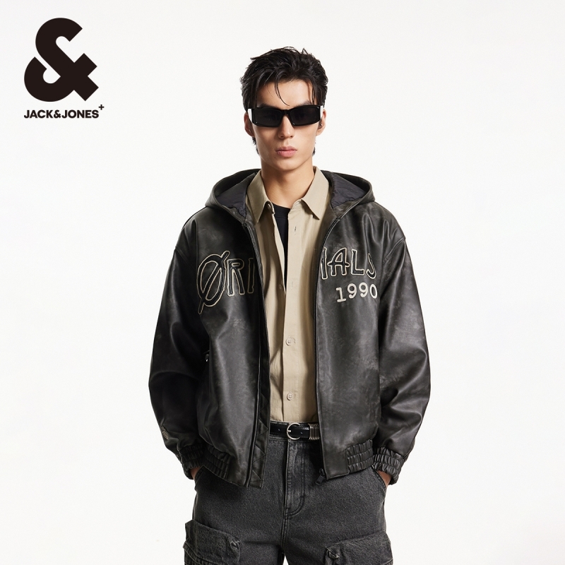 杰克琼斯夹克外套男春季字母贴布logo刺绣略宽松连帽棉服男款男装