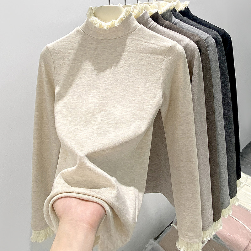 加厚蕾丝花边半高领打底衫女秋冬季内搭修身抗寒保暖针织外穿上衣