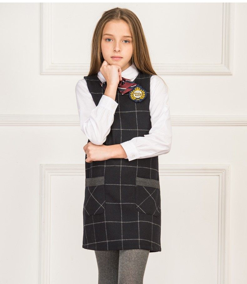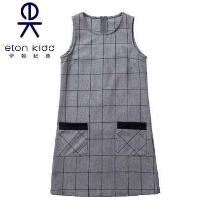 伊顿纪德校服班服女童学院风直筒连衣裙羊毛呢格子背心裙16L404