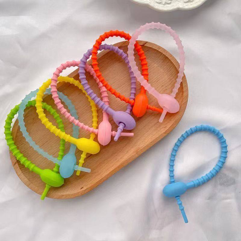 硅胶扎带diy彩色收纳数据线可重复使绕线器理线带绑带钥匙扣挂件
