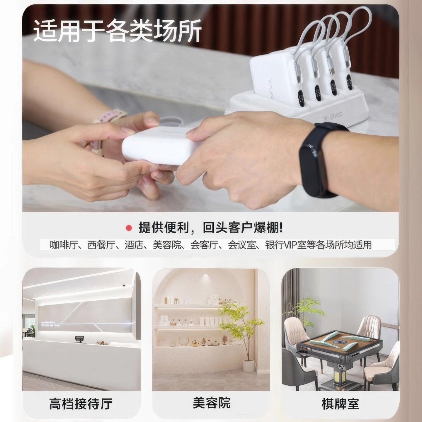 3C认证充电宝羽博自带线共享充电宝快充大容量10000毫安超薄迷你移动电源适用华为苹果iPhone家庭商用充电站
