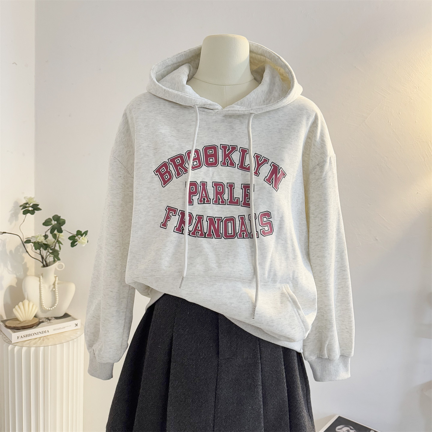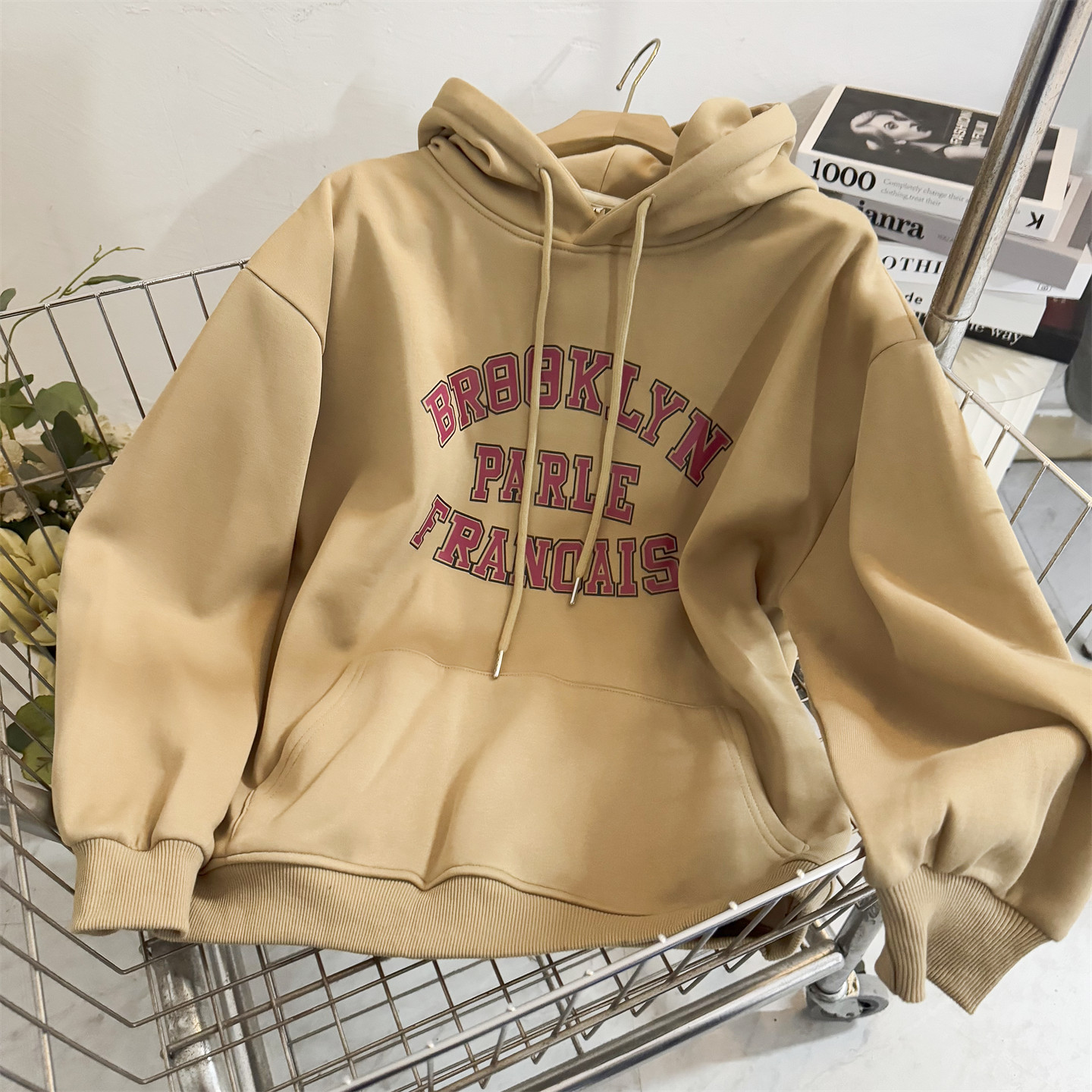 美式复古加绒加厚连帽卫衣女2025秋冬季宽松休闲字母套头绒衫上衣