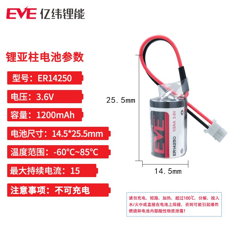 亿纬ER14250台达PLC绝对值ER3V/3.6V安川伺服器驱动JZSP-BA01电池