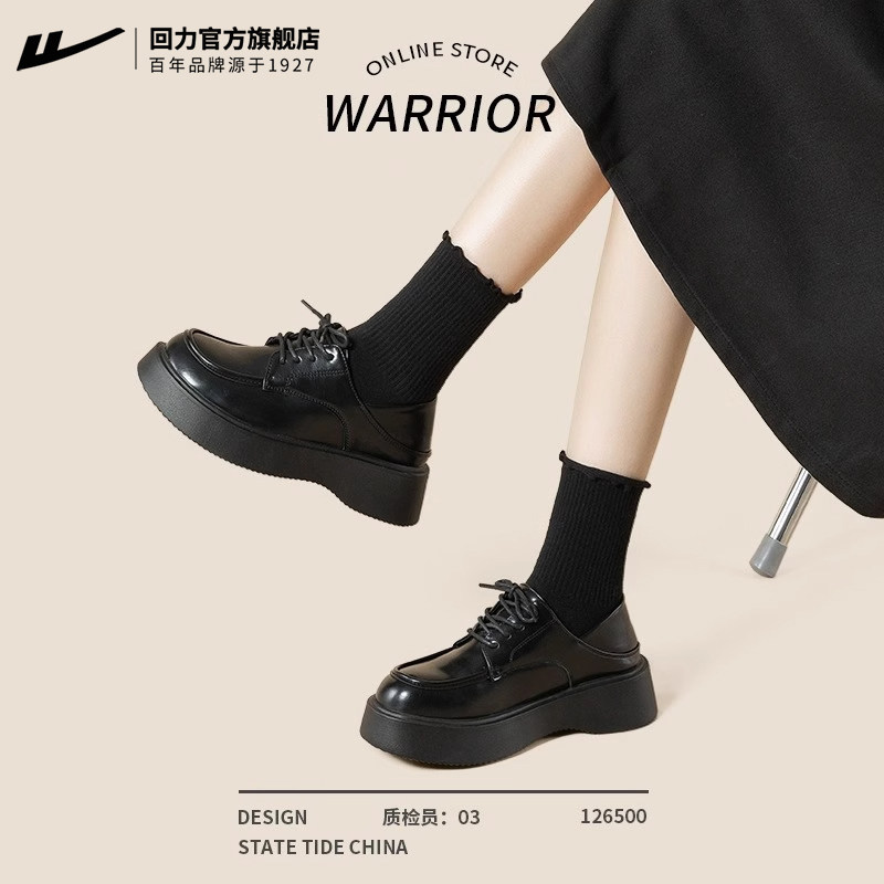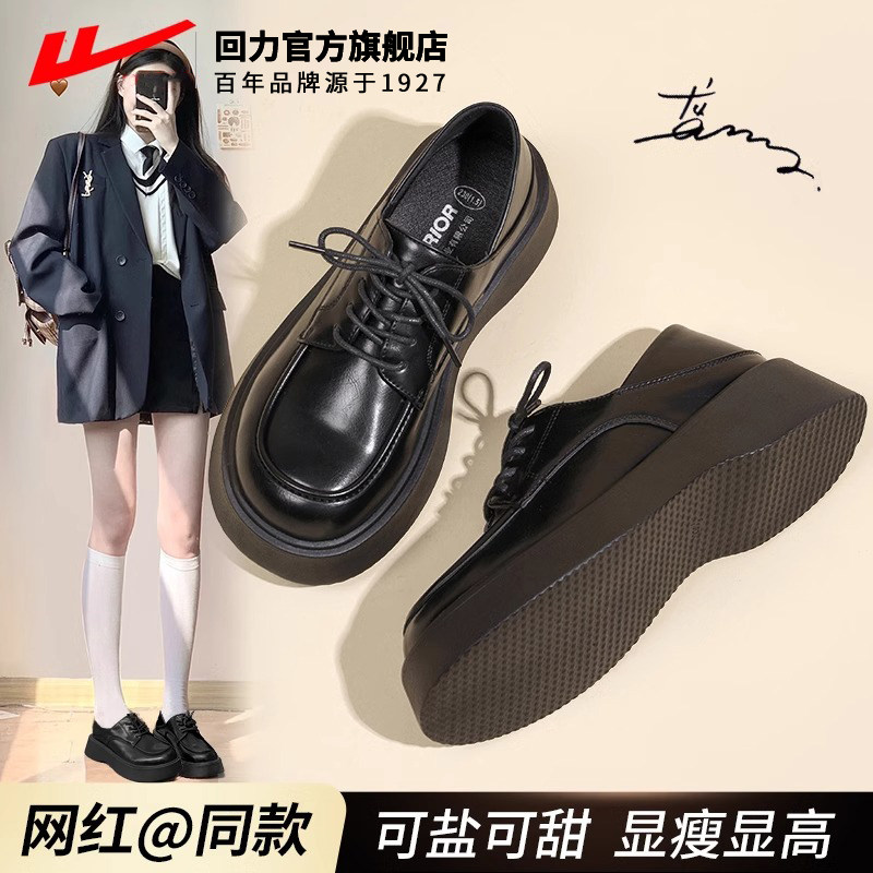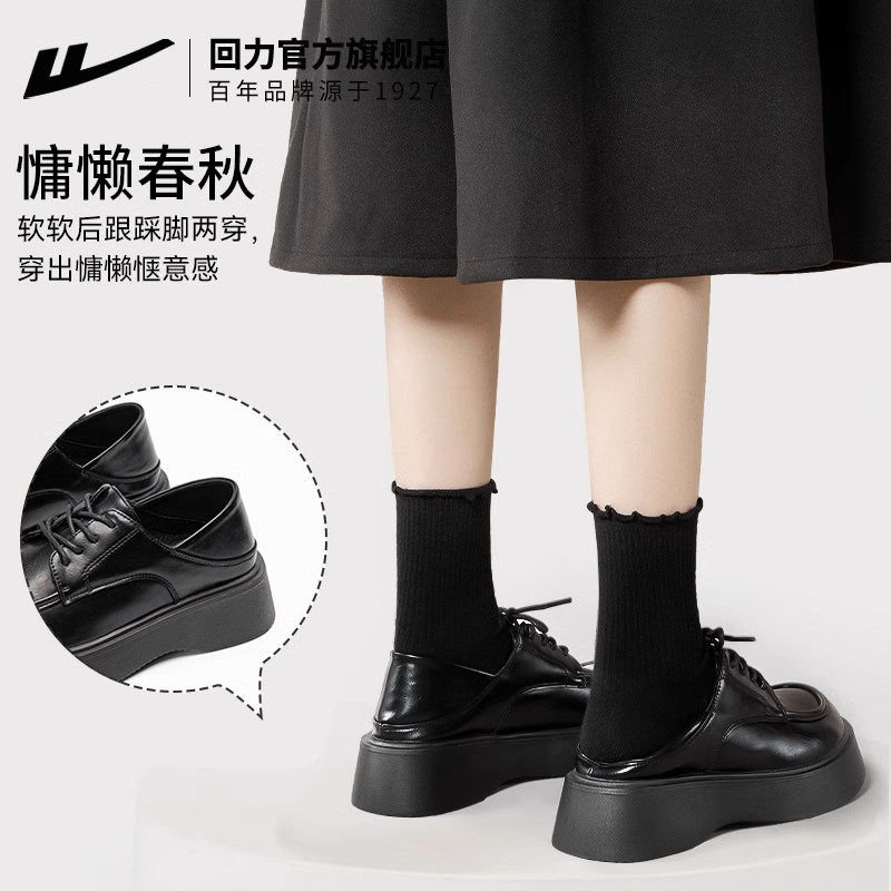 回力官方旗舰店英伦风小皮鞋女2025新款鞋子女款黑色厚底乐福鞋女