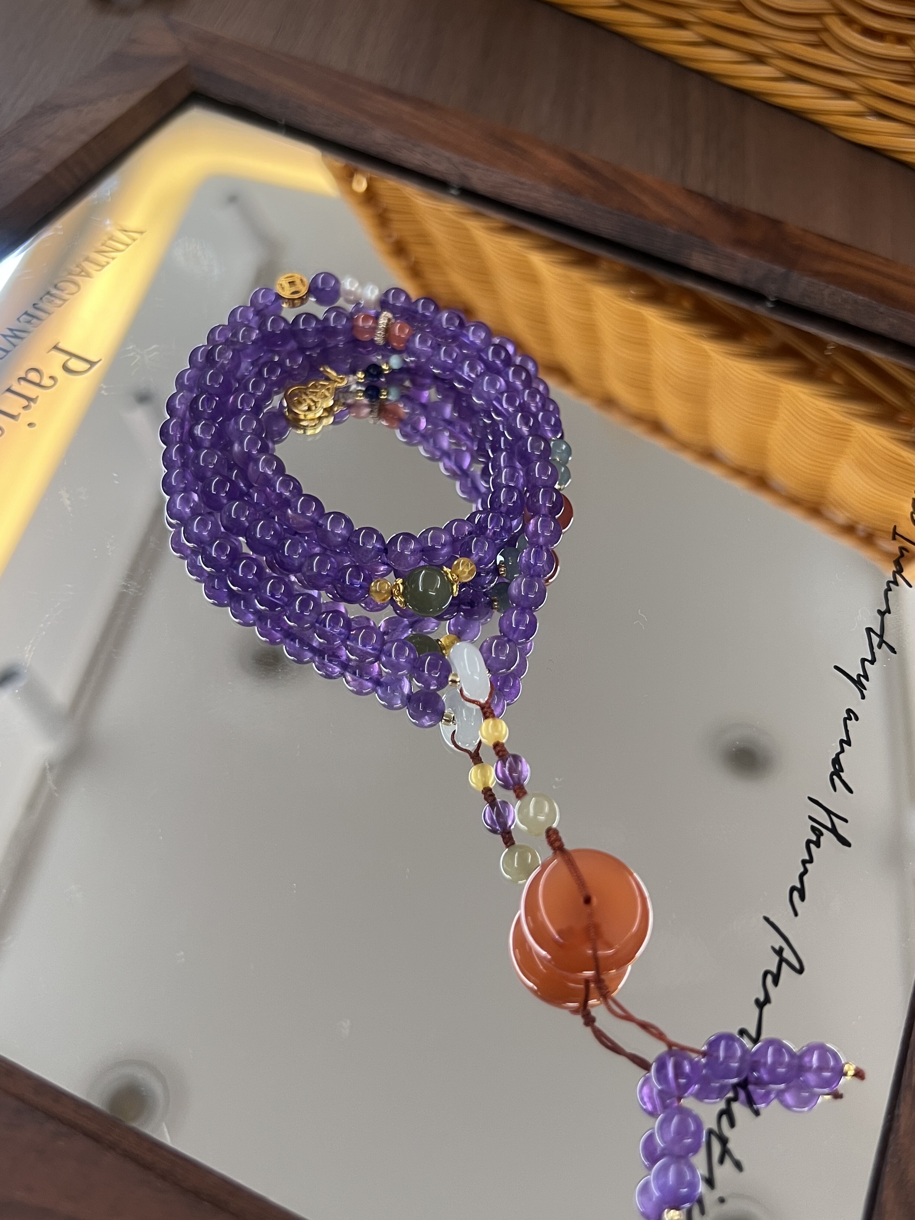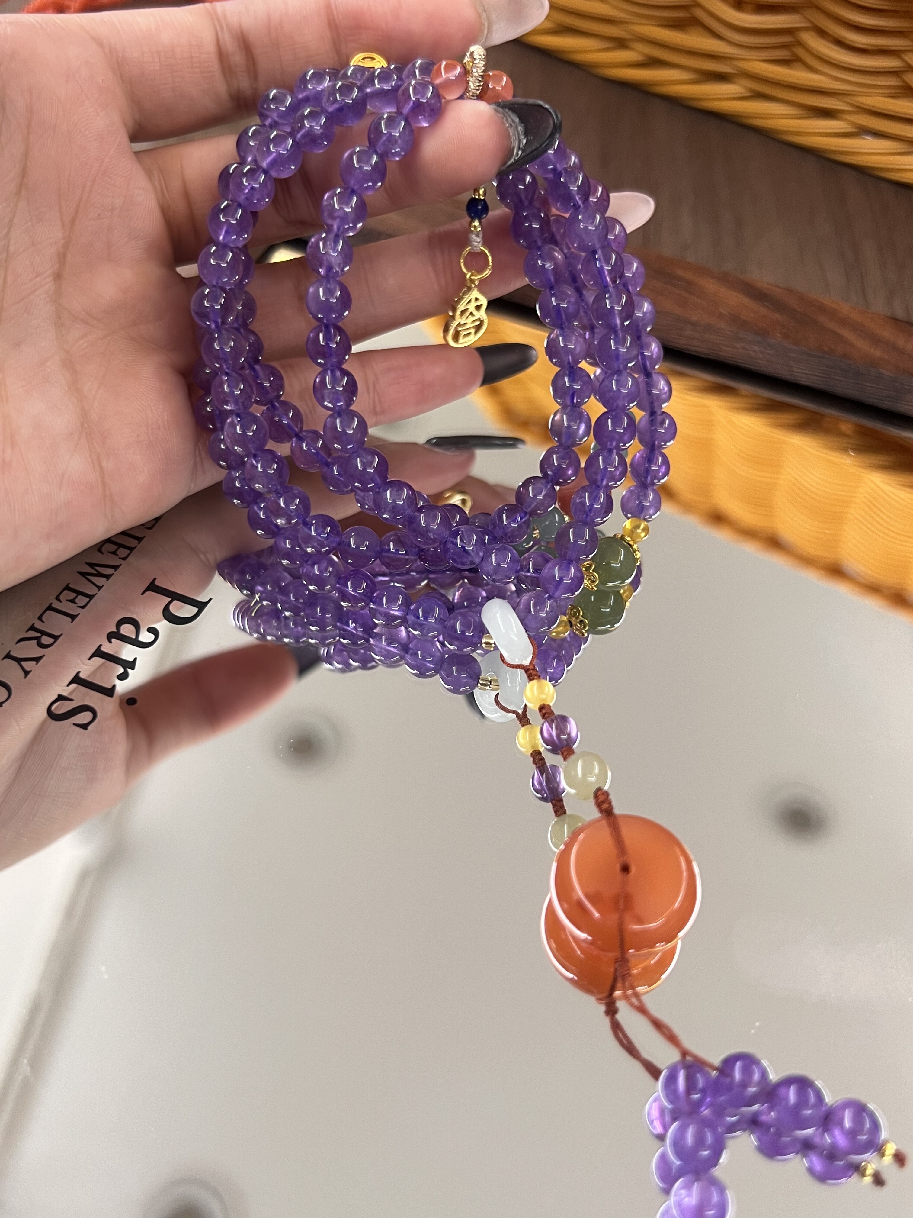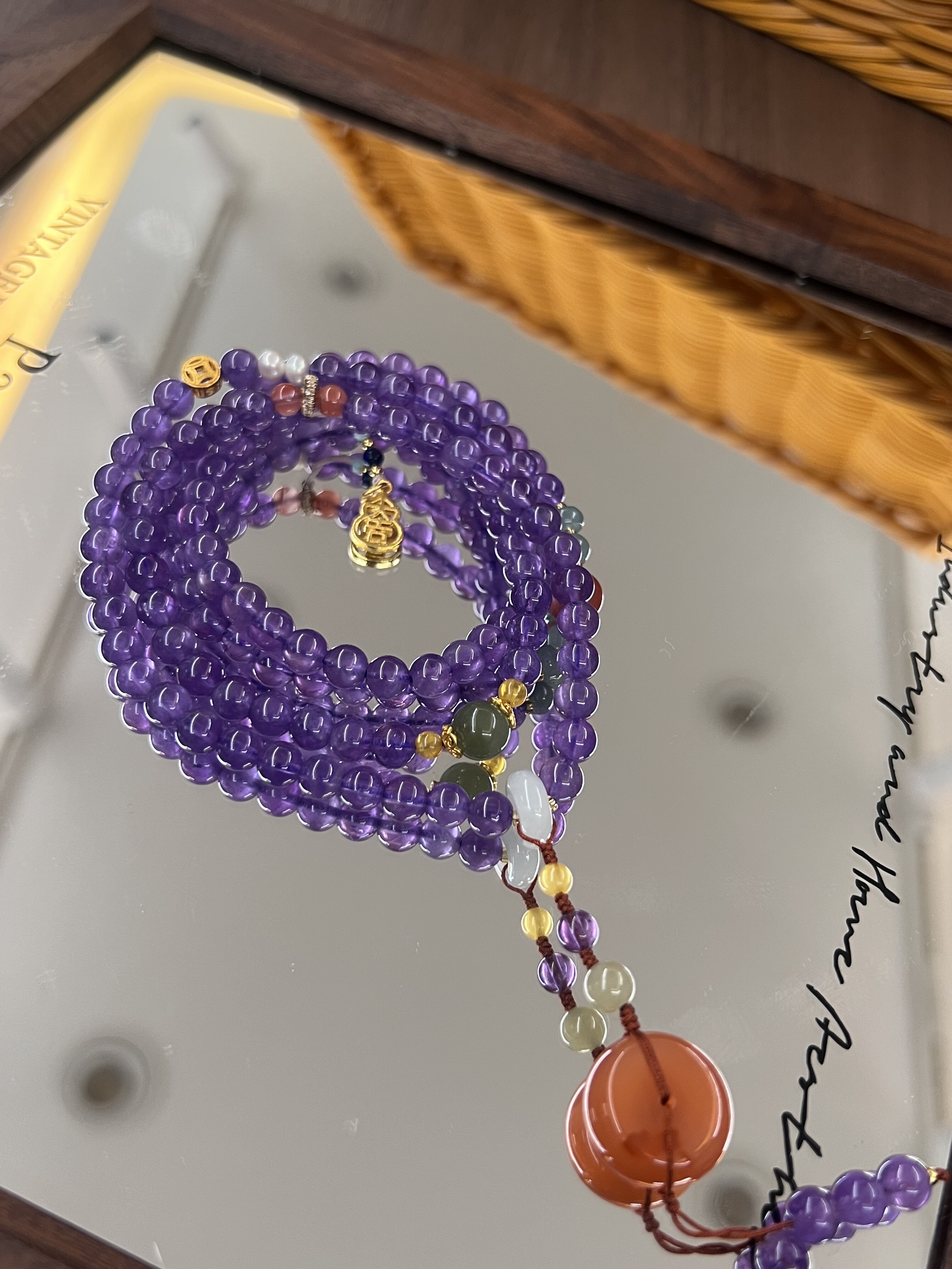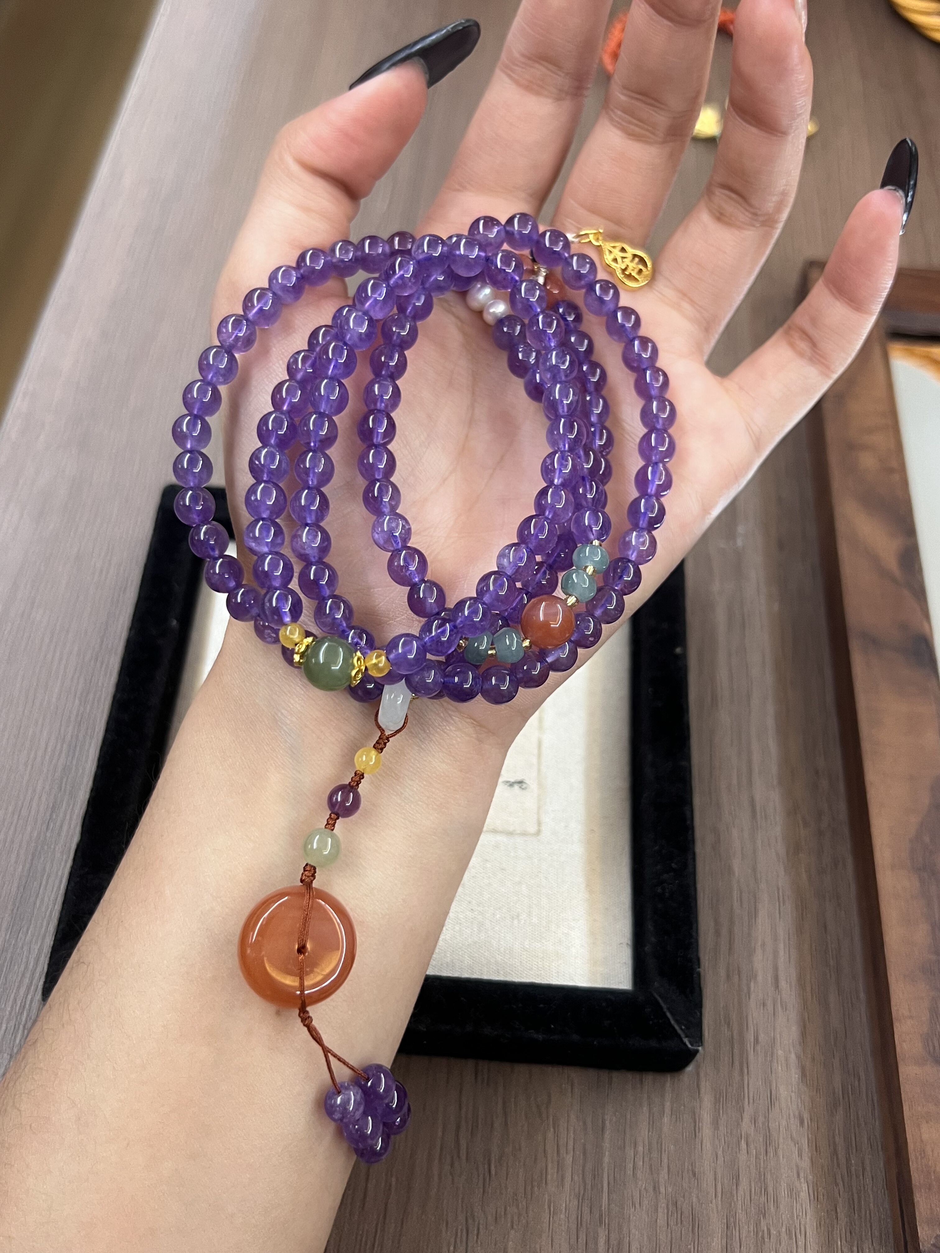 天然紫水晶多圈项链南红平安扣碧玉珠子挂坠新中式复古风格