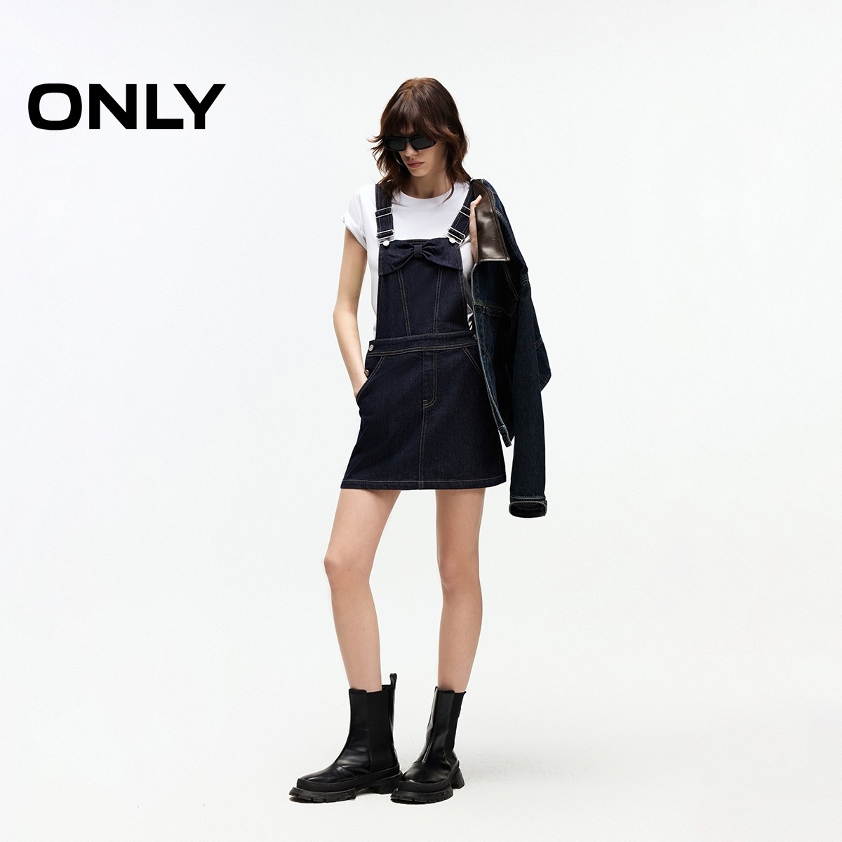 绫致ONLY2025春季新款甜美风修身牛仔短裙背带裙连衣裙女