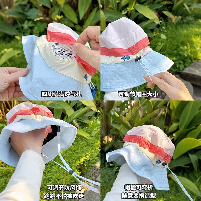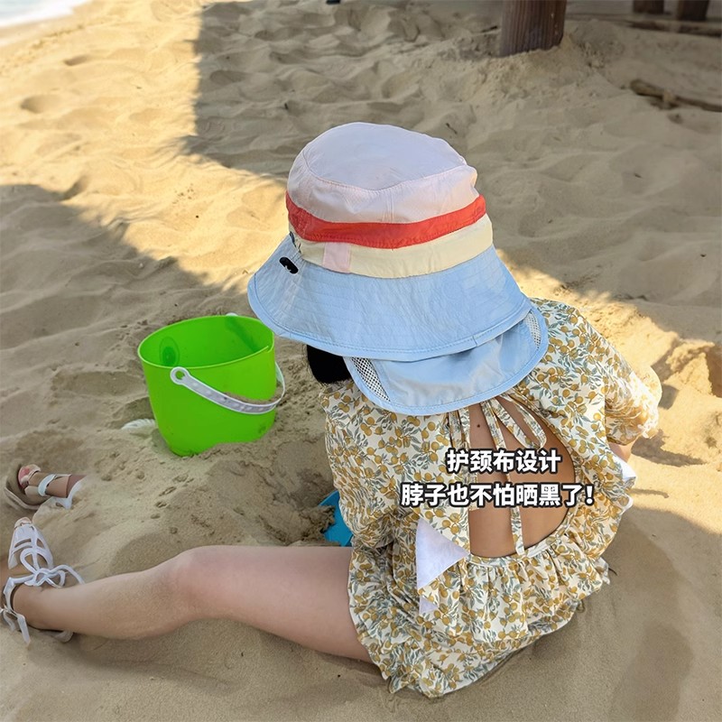 夏季日系儿童防晒帽薄款韩版渔夫帽跨境透气防紫外线宝宝遮阳帽子