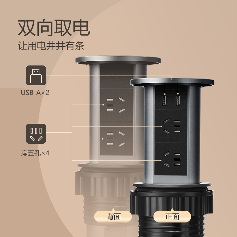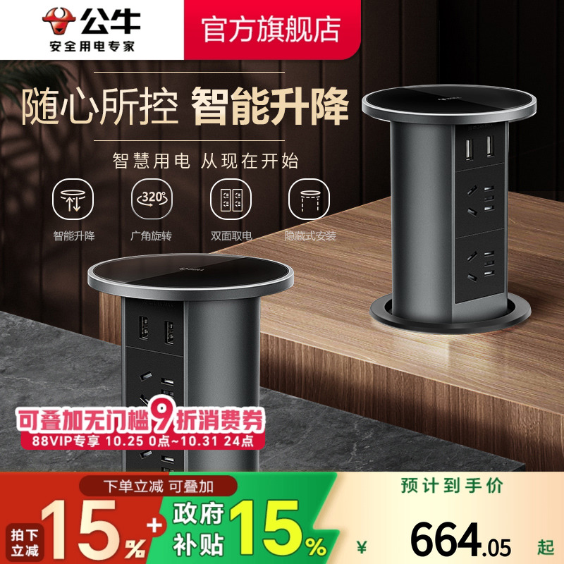 公牛插座升降插座嵌入式厨房智能插排隐藏式桌面开关插座无线快充