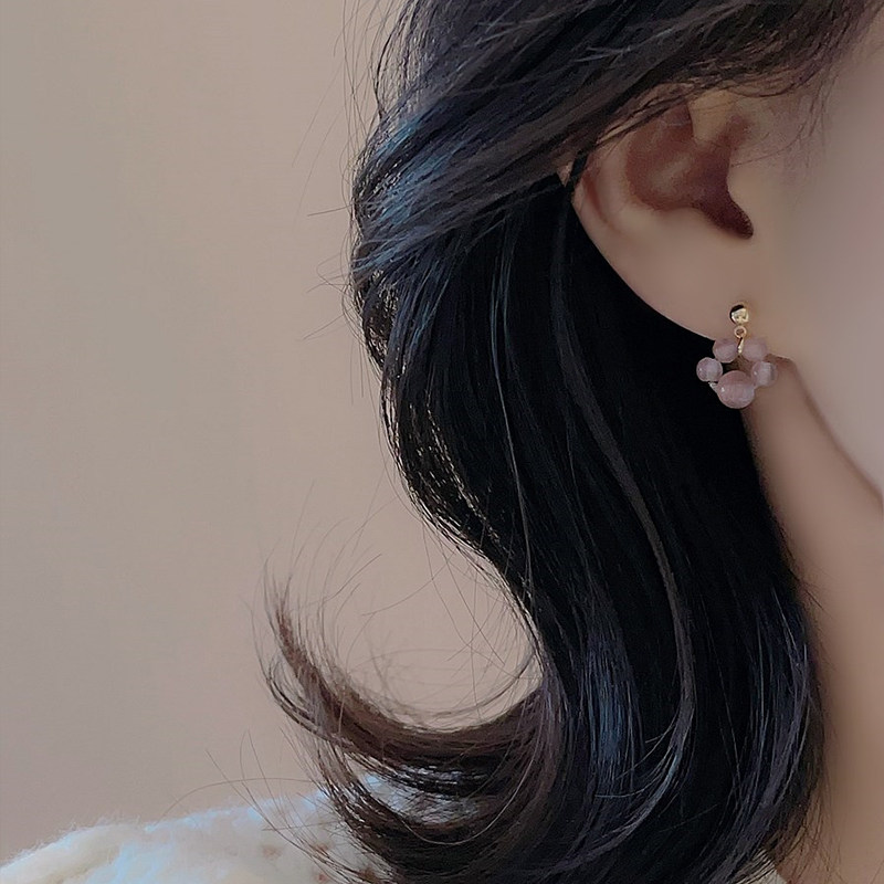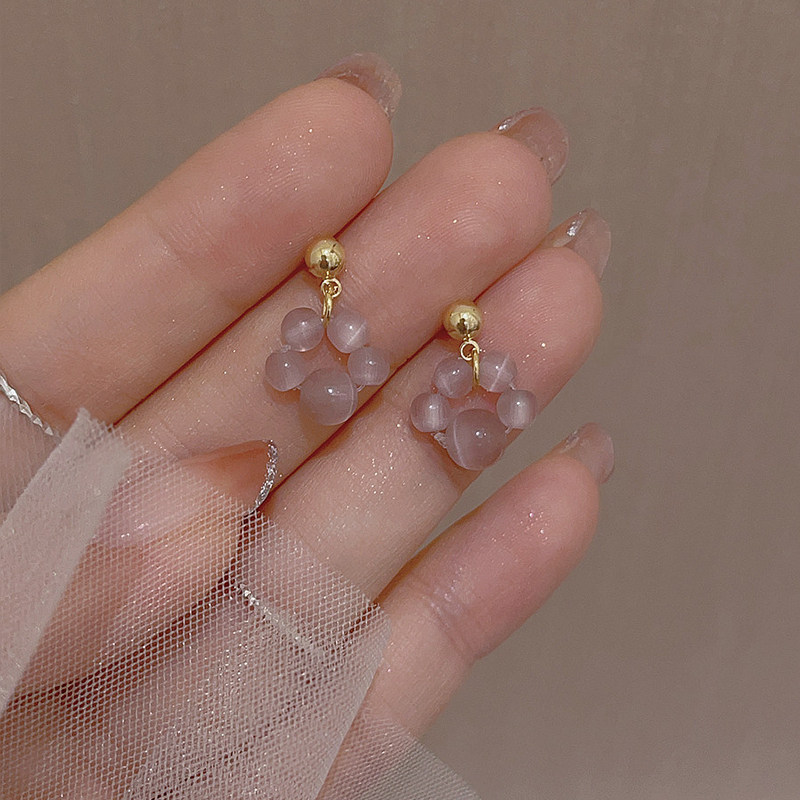 法式温柔粉紫色轻著耳钉女爆款可爱优雅复古气质手作猫爪耳环耳饰
