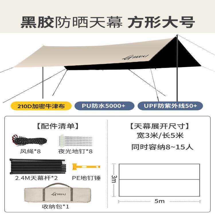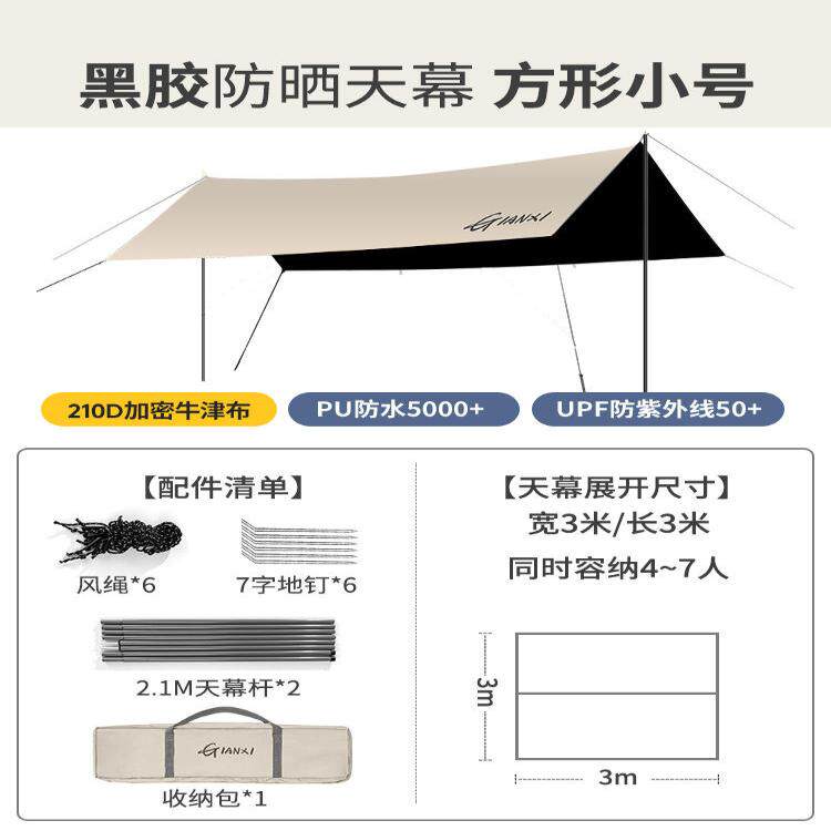 天幕帐篷露营遮阳便携黑胶天幕