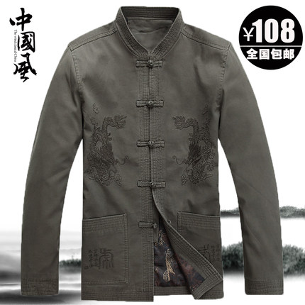 唐装夹克男式外套 春秋季长袖上衣送礼父亲装夹克汉服唐装大码男