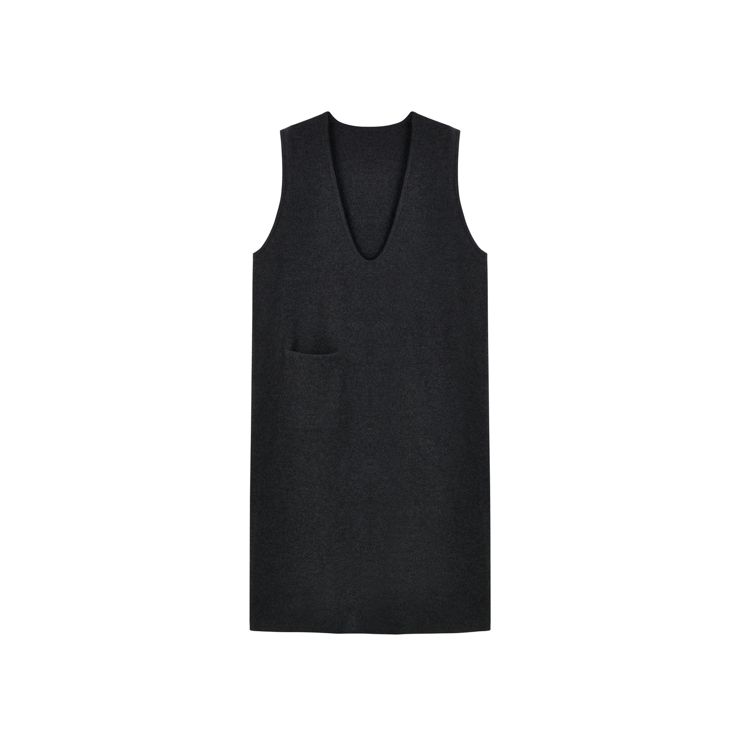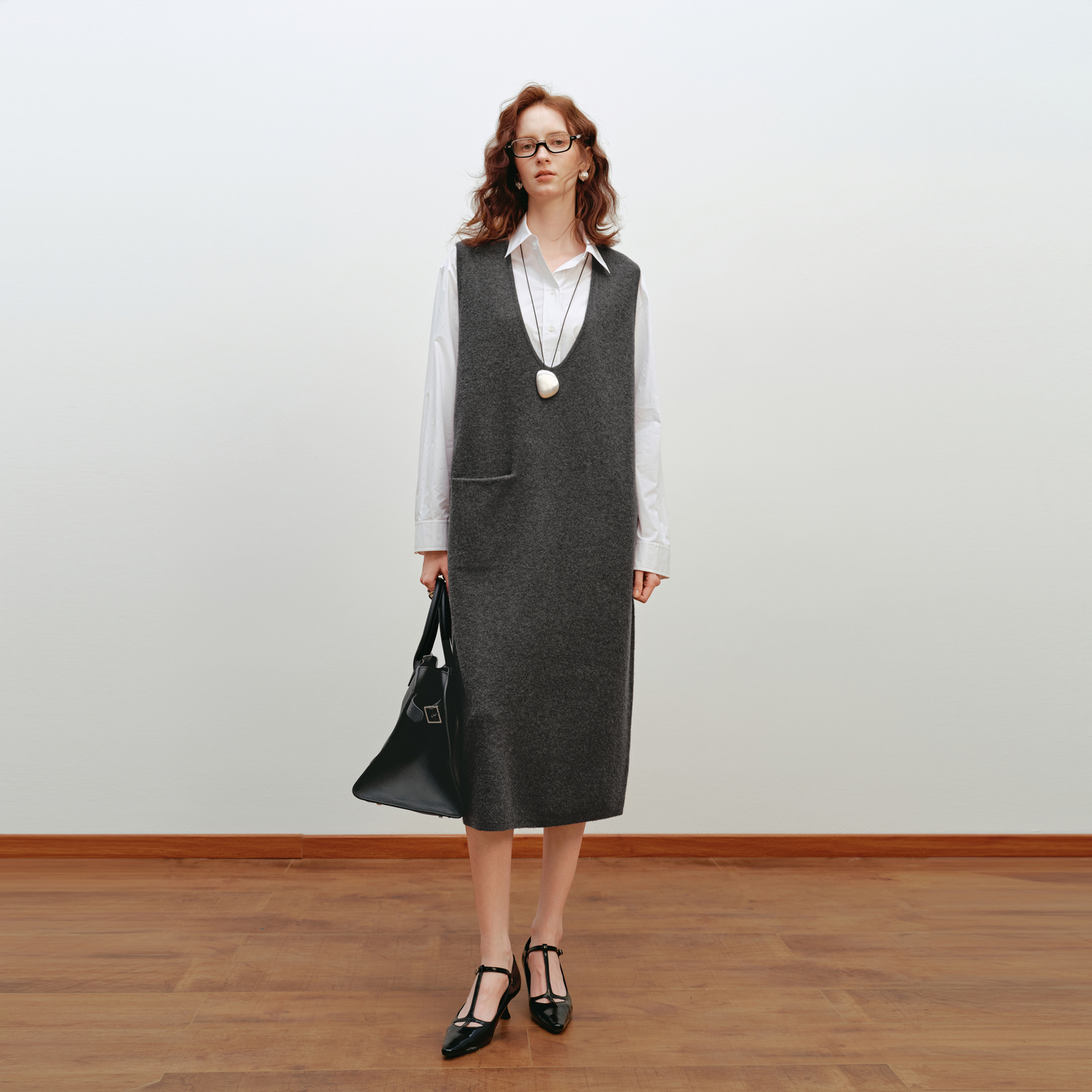 CHICC3100%绵羊毛深V领直筒背带裙通勤秋冬新款