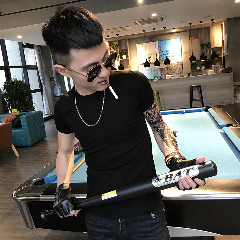 精神小伙纯色白色打底衫短袖T恤男修身夏季紧身衣服韩版2024新款