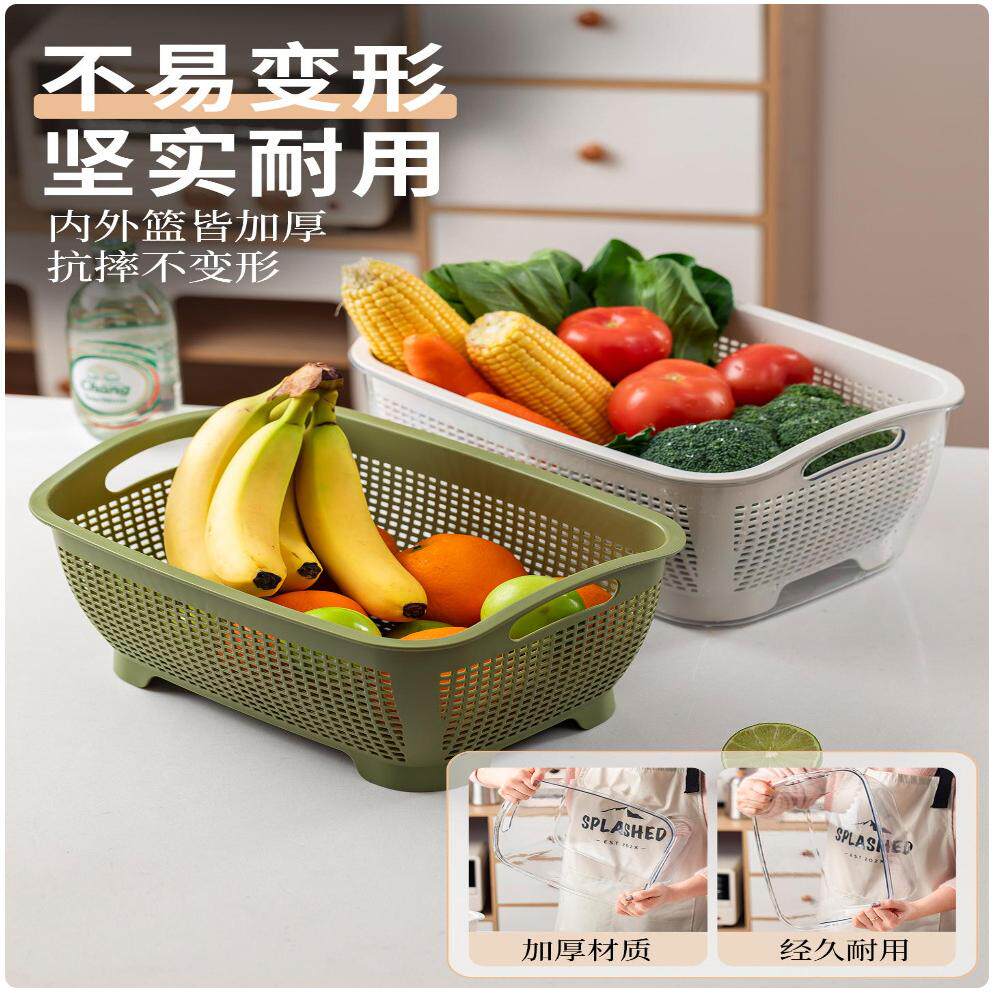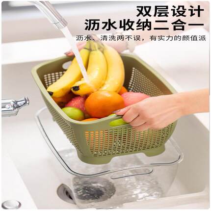 【直播专享】沥水篮水果盘洗菜淘米滤水蓝厨房洗菜盆厨房洗菜篓子