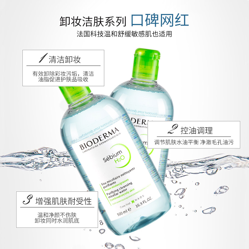 2瓶贝德玛法国卸妆水蓝水卸妆深层控油强效清洁长效保湿500ML