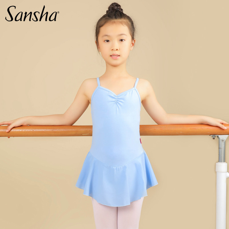 正品Sansha三沙儿童舞蹈服芭蕾舞吊带连体服纱裙中国舞考级练功服
