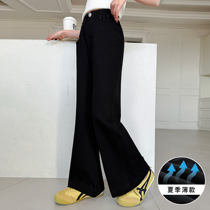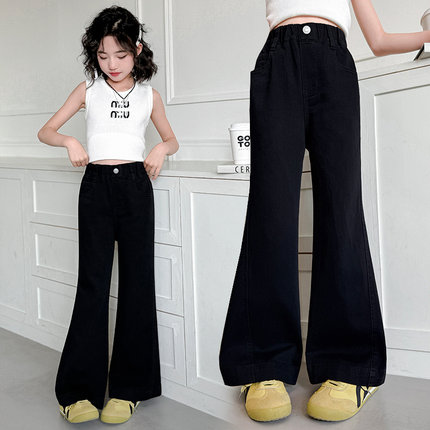 女童裤子夏季2025新款洋气微喇裤女大童黑色薄款牛仔裤儿童喇叭裤