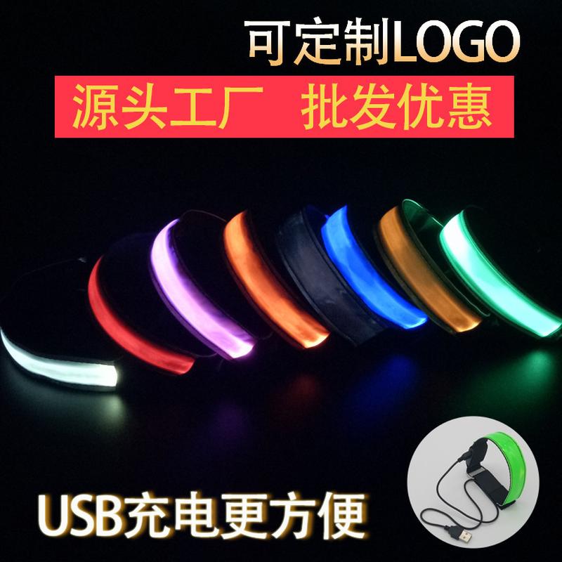 户外夜跑灯发光跑步臂带骑行安全绑腿信号灯反光装备USB充电手环