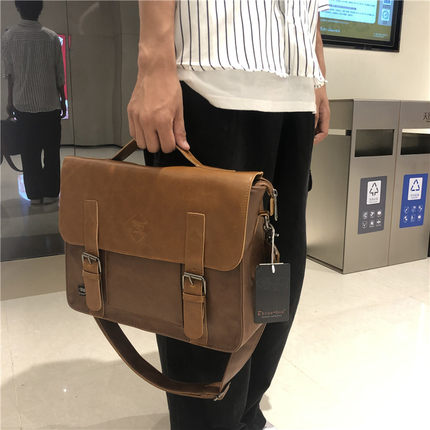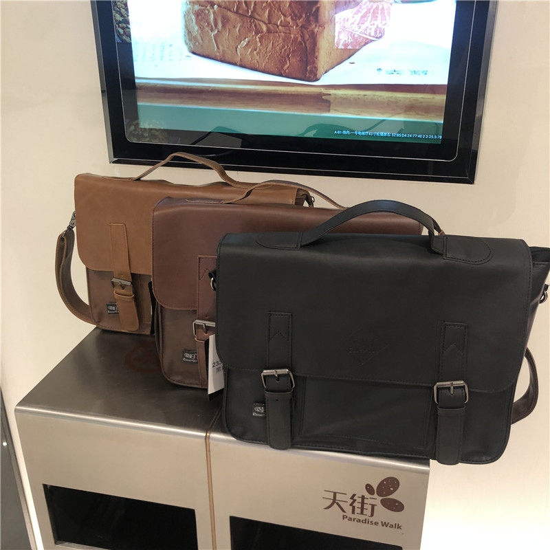 threebox韩国日系男士手提包复古商务单肩包女斜挎文件公文电脑包