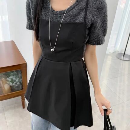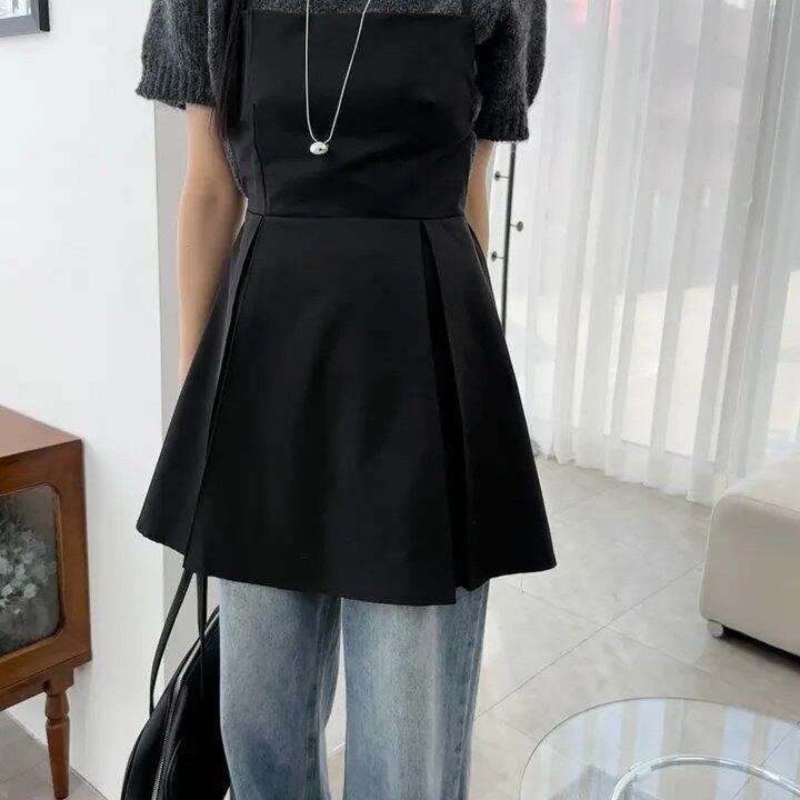 chic 韩版春夏时尚复古露背系带收腰叠穿内搭外穿吊带背心连衣裙