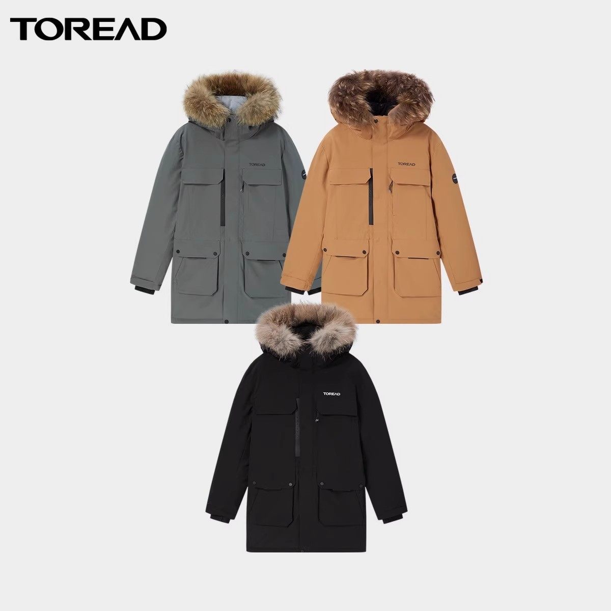 探路者羽绒服女中长款工装派克服大衣户外防风加厚保暖冬季外套男