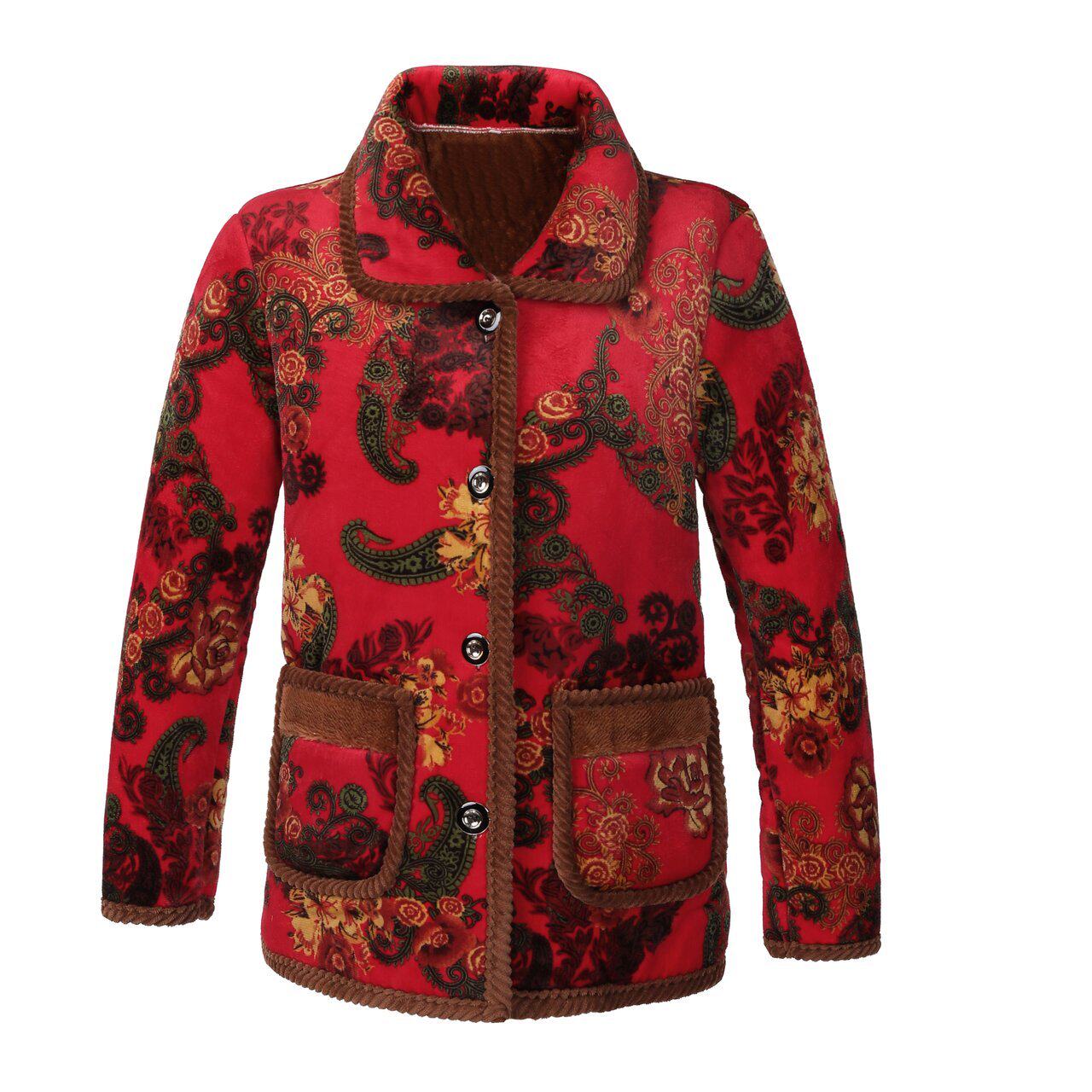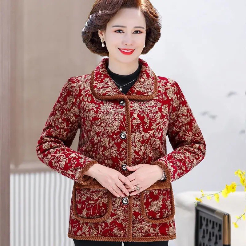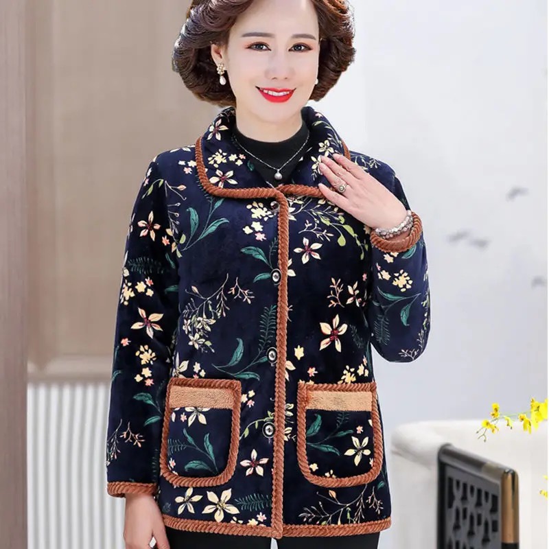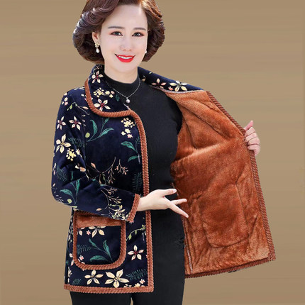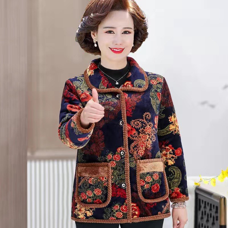 中老年女装棉衣短款翻领保暖加绒加厚奶奶冬装花棉袄老年棉服上衣