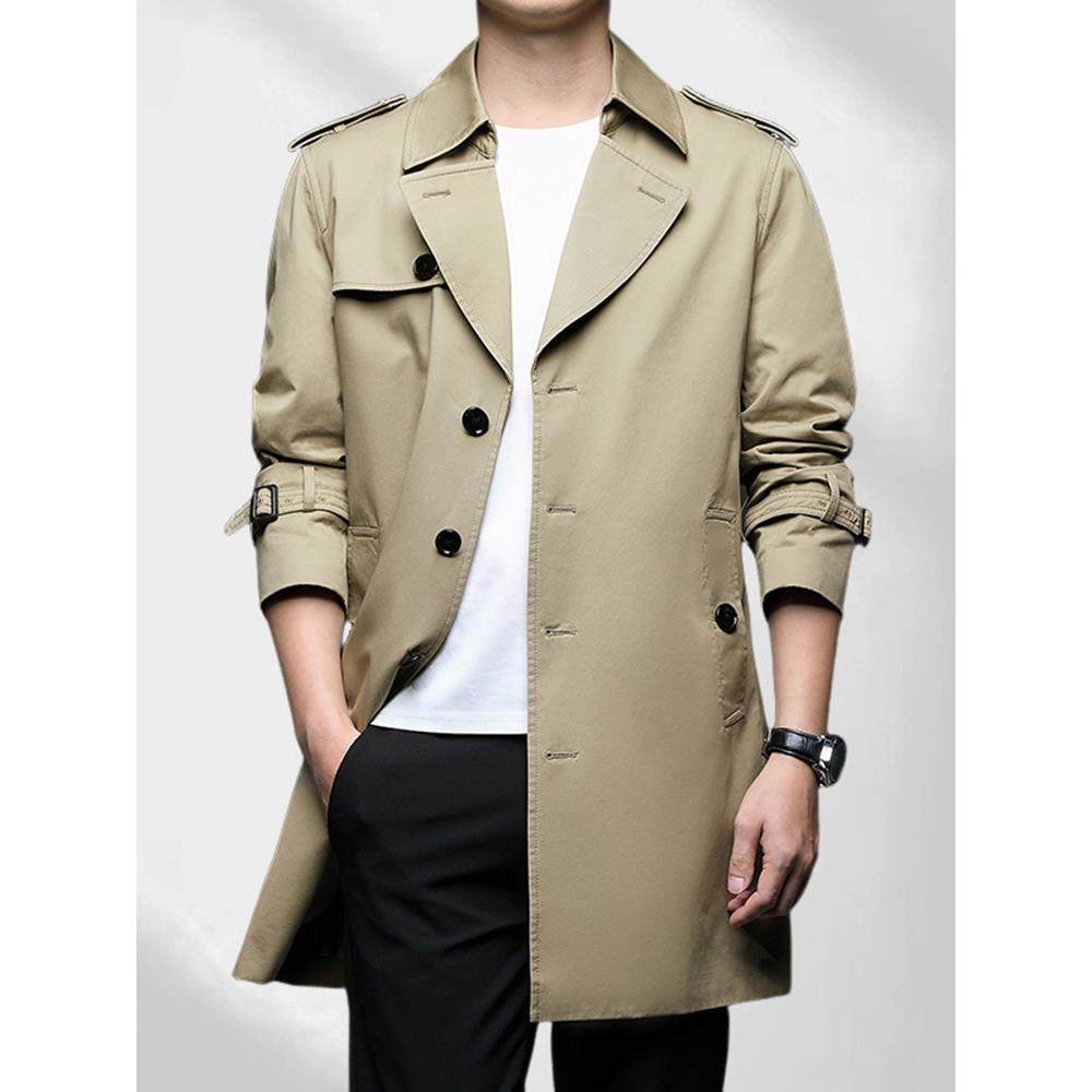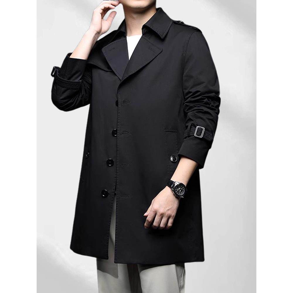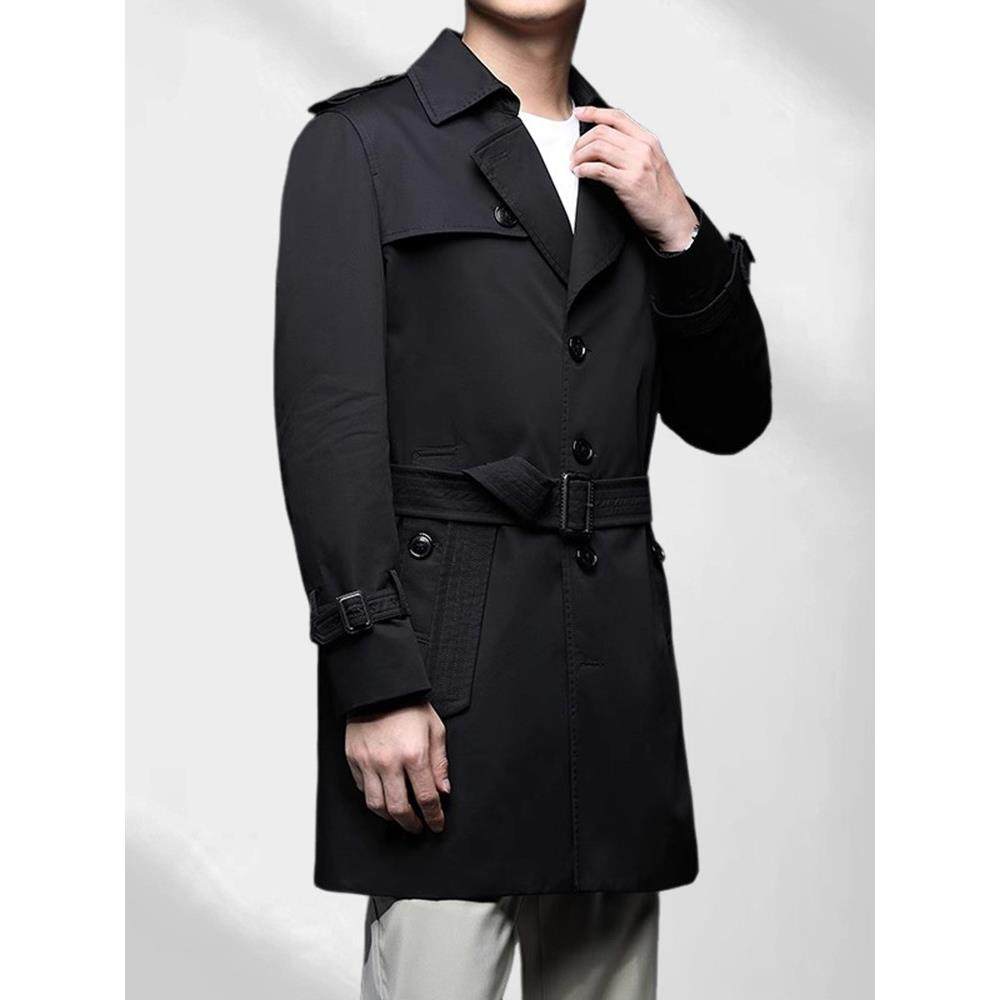 法莎尼亚男装2025新款纯棉风衣男中长款春秋季中年西装领大衣外套