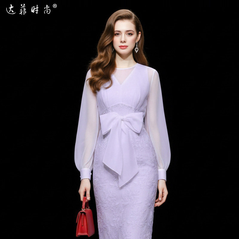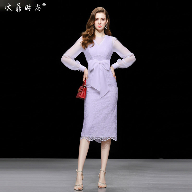 春装女装2026新款气质法式蕾丝长袖收腰显瘦中长款连衣裙长裙裙子