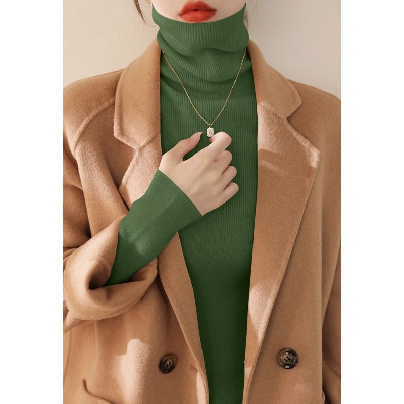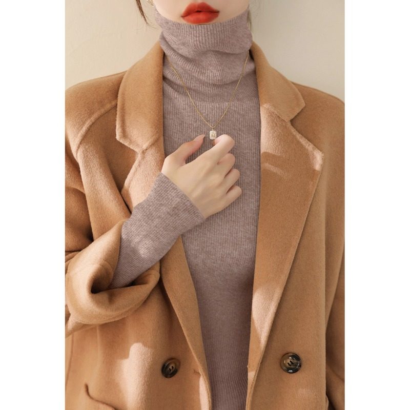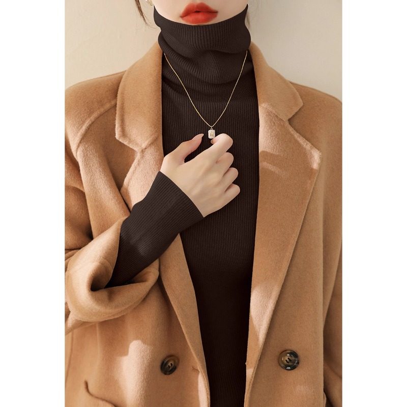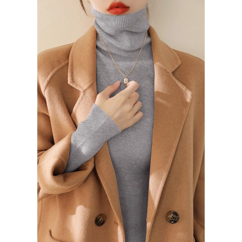 灰色高领针织打底衫女秋冬季2025新款修身显瘦毛衣内搭堆堆领上衣
