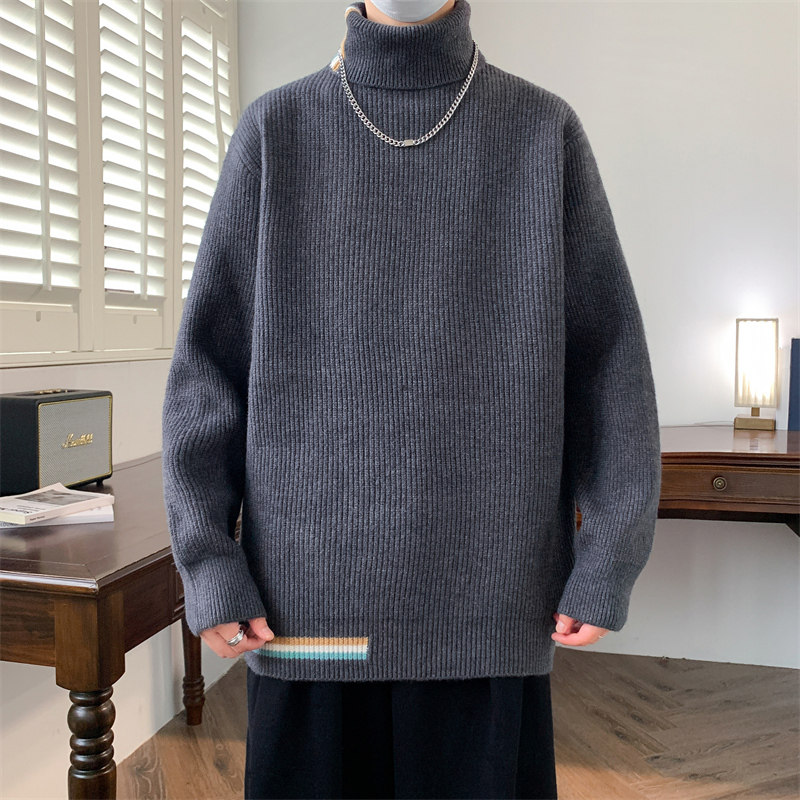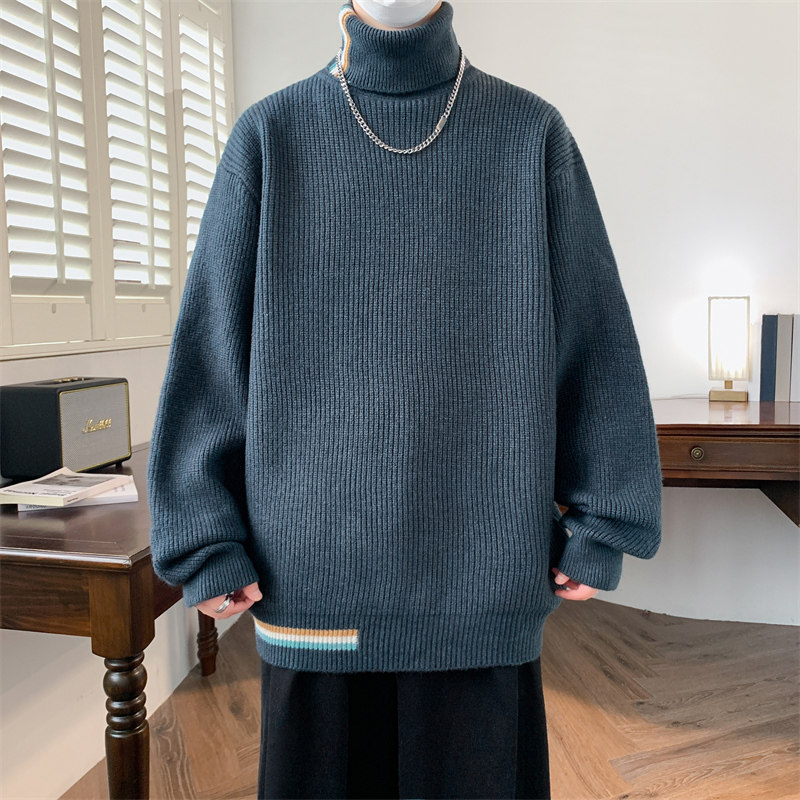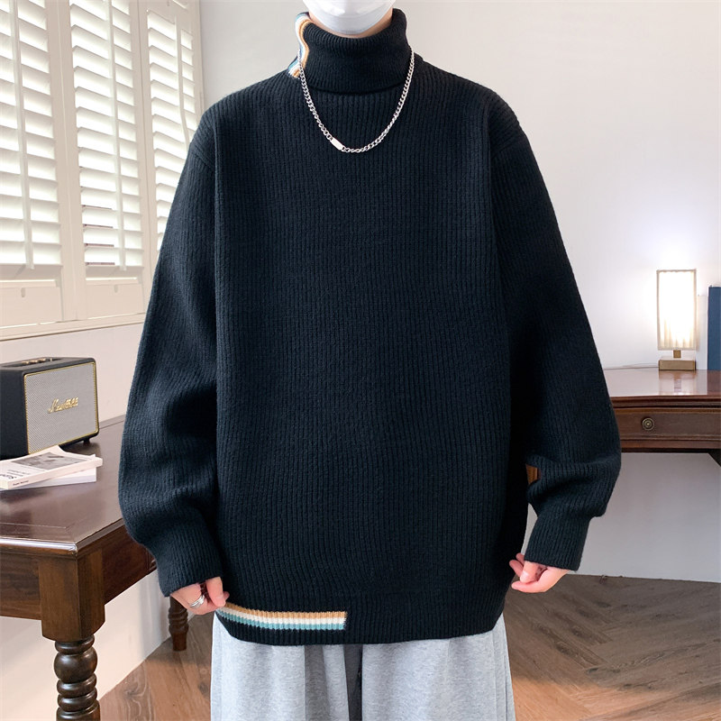 可翻高领毛衣男款2025秋冬季内搭打底针织衫青少年保暖毛线衣以純