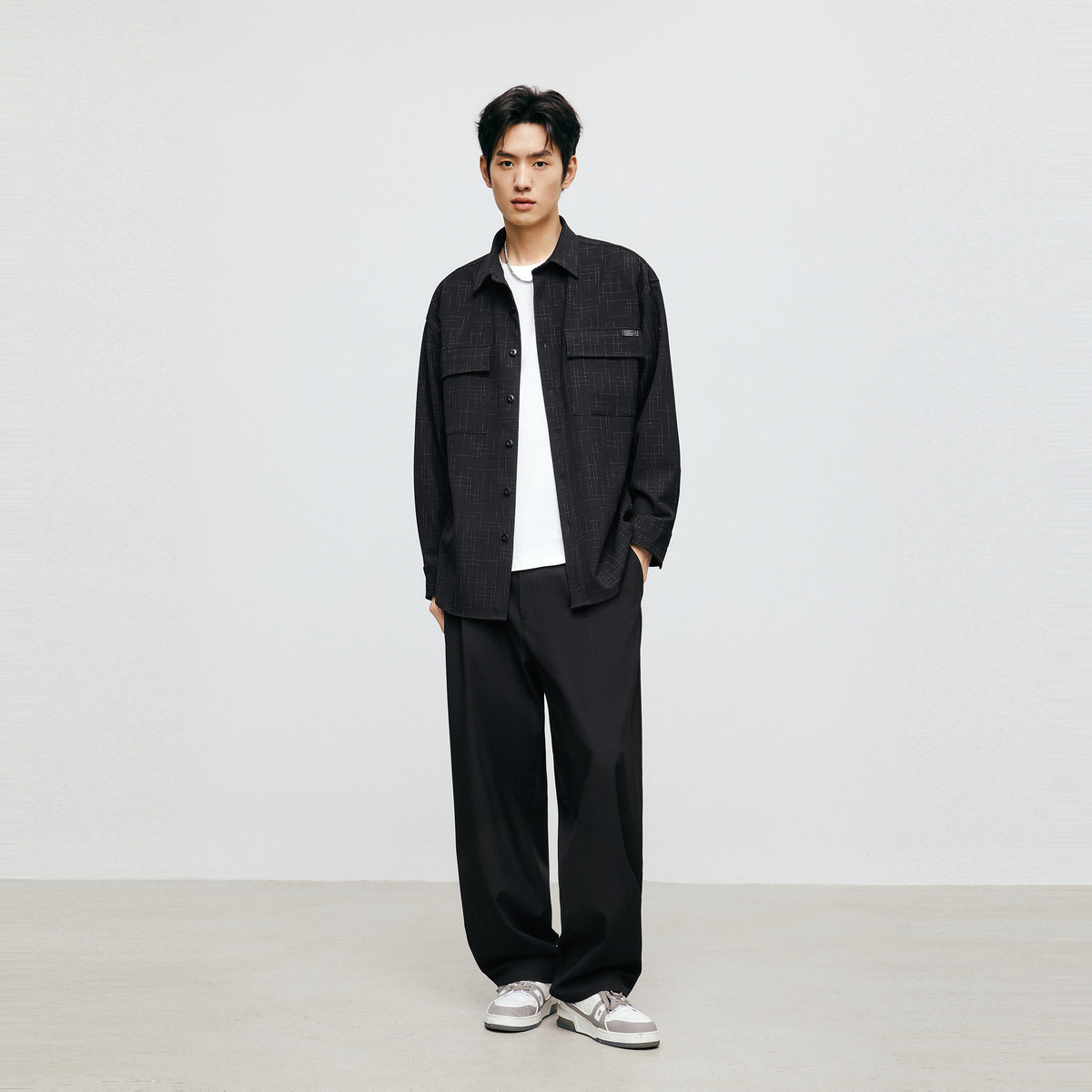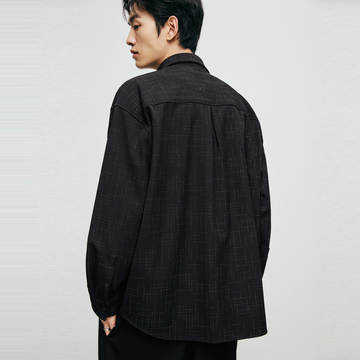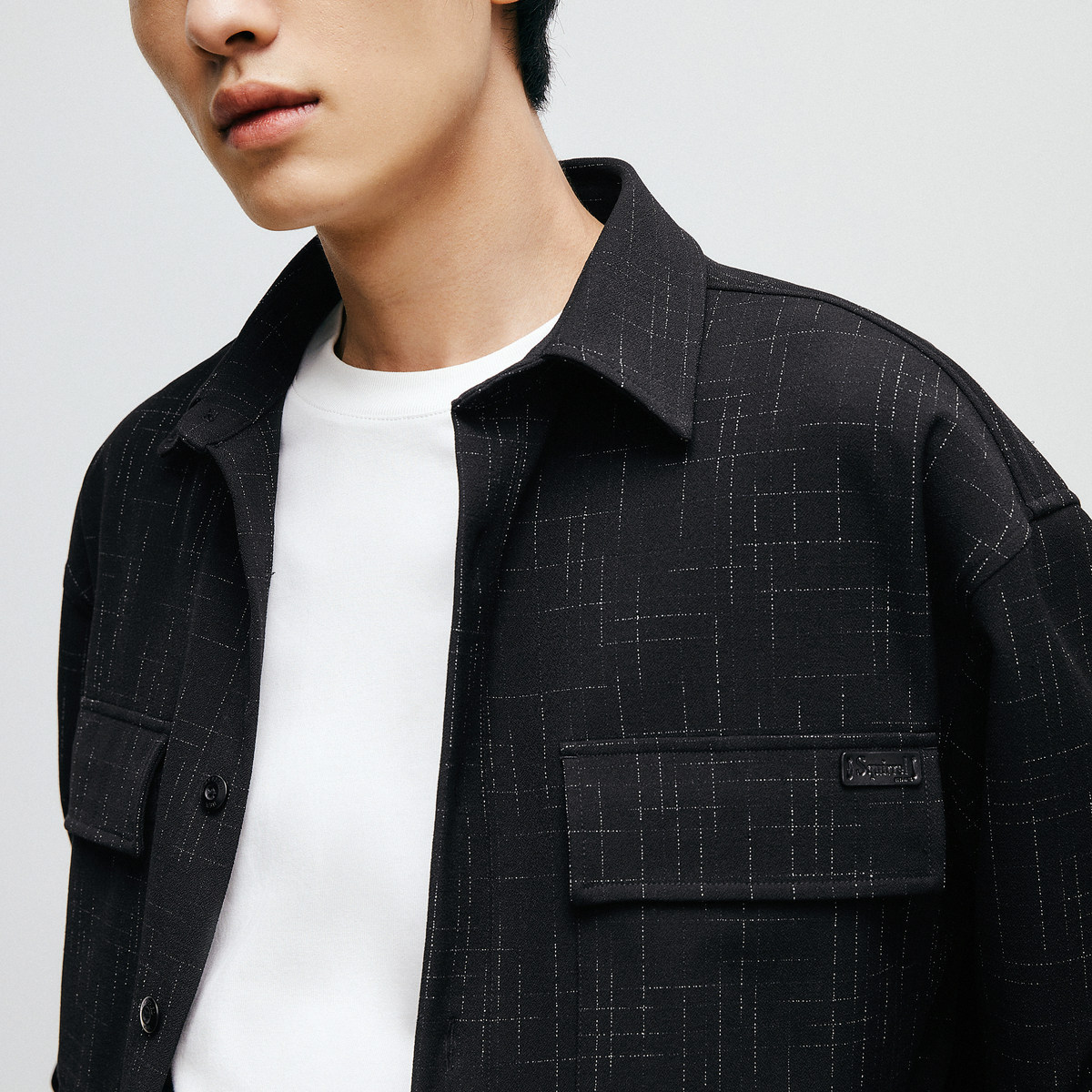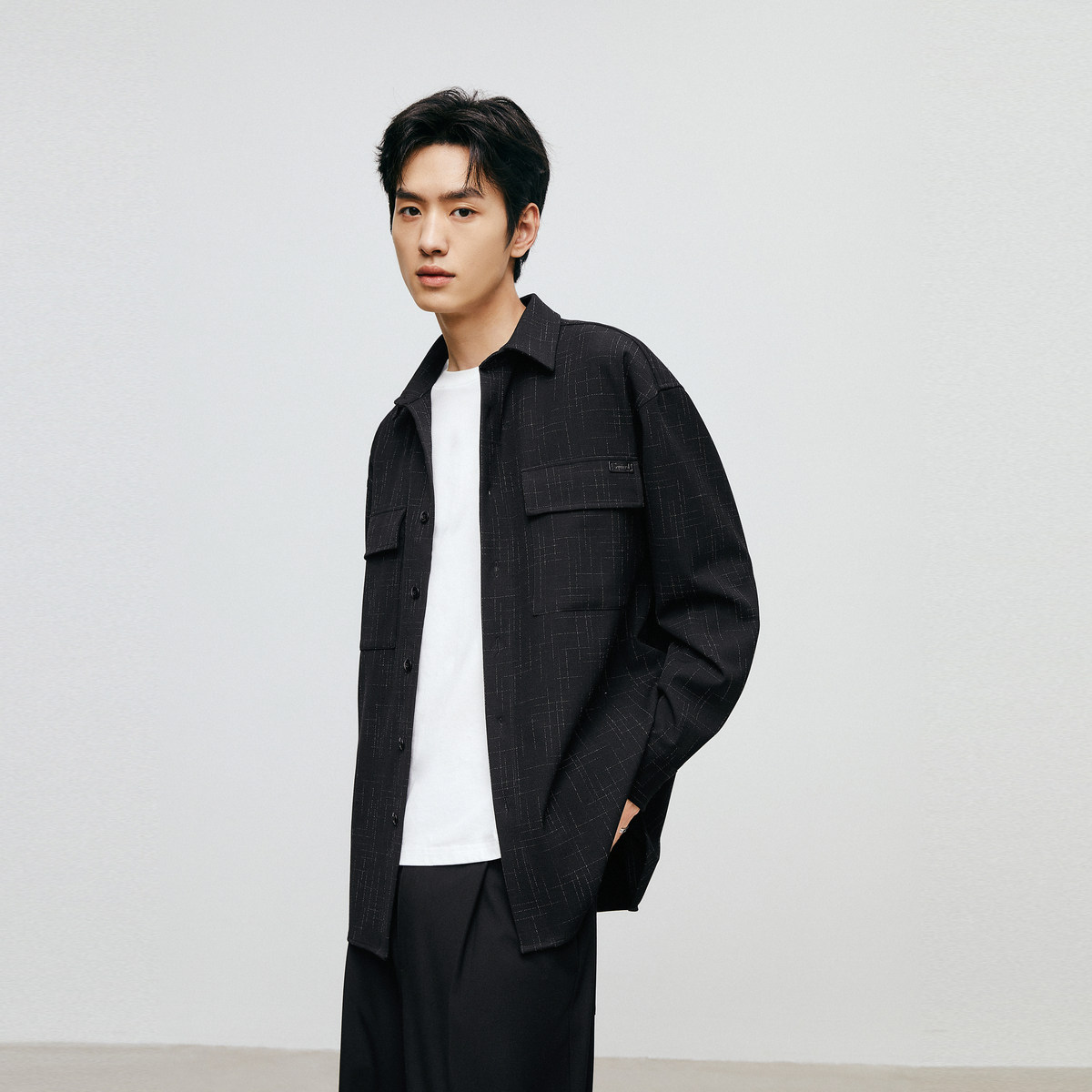 太平鸟男装奥莱小香风衬衫秋口袋休闲衬衫男士宽松上衣潮